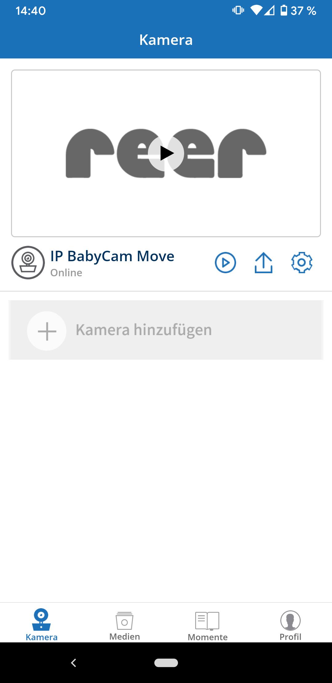 Install the app and follow the instructions to connect your smartphone to the IP BabyCam Move from reer. In just a few steps you can turn your smartphone into a smart baby monitor. The most important features of the reer IP BabyCam Move at a glance:
