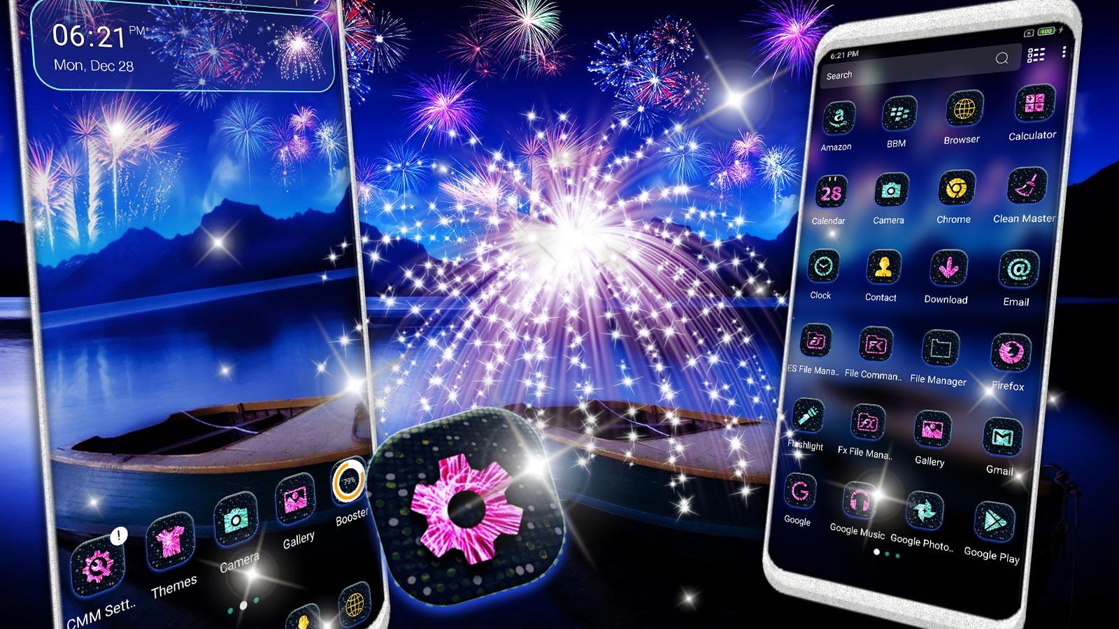Do you want to change the look of phone without spending a penny? Yes It's possible; Right! No need to buy a new phone to change look of your phone. Just install this Fireworks Celebration Theme, It will personalize your smartphone phone screen in a way that suits better. Fireworks Celebration theme consists of variety of icon packs & HD Fireworks Wallpaper, also it will be applied automatically in a seconds and don't need to customize manually. This Theme's icon set is crafted by world's top designers.