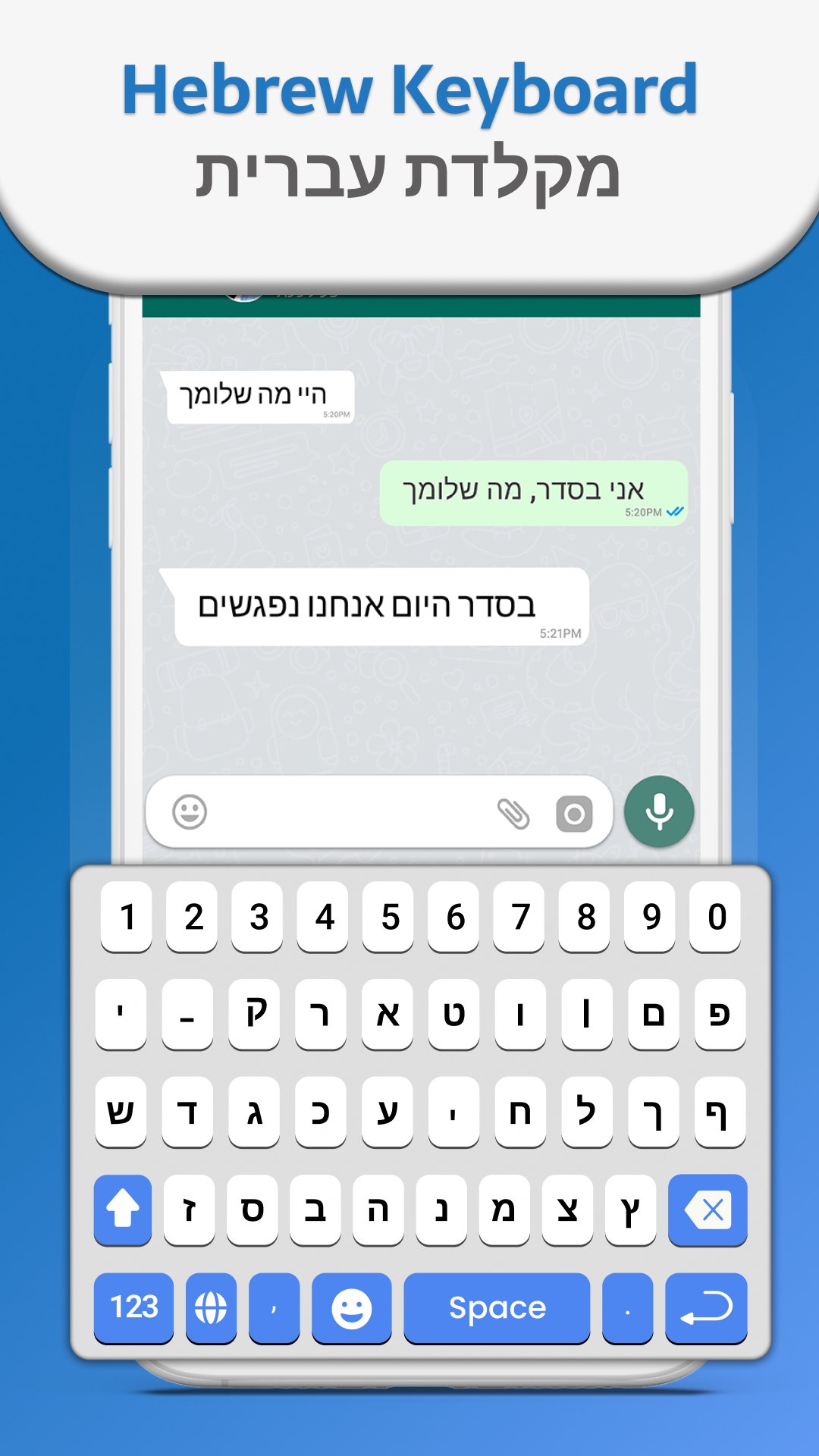 Hebrew Keyboard 2020: Hebrew Typing Keyboard is free app for android mobiles in the Hebrew native language that type Hebrew & English. Hebrew English Keyboard is fast Hebrew typing app and easy Hebrew typing with all Hebrew words and Hebrew Alphabets. Fast Hebrew Typing Keyboard for android is the best Hebrew lovers with easy and Fast typing speed Keyboard.