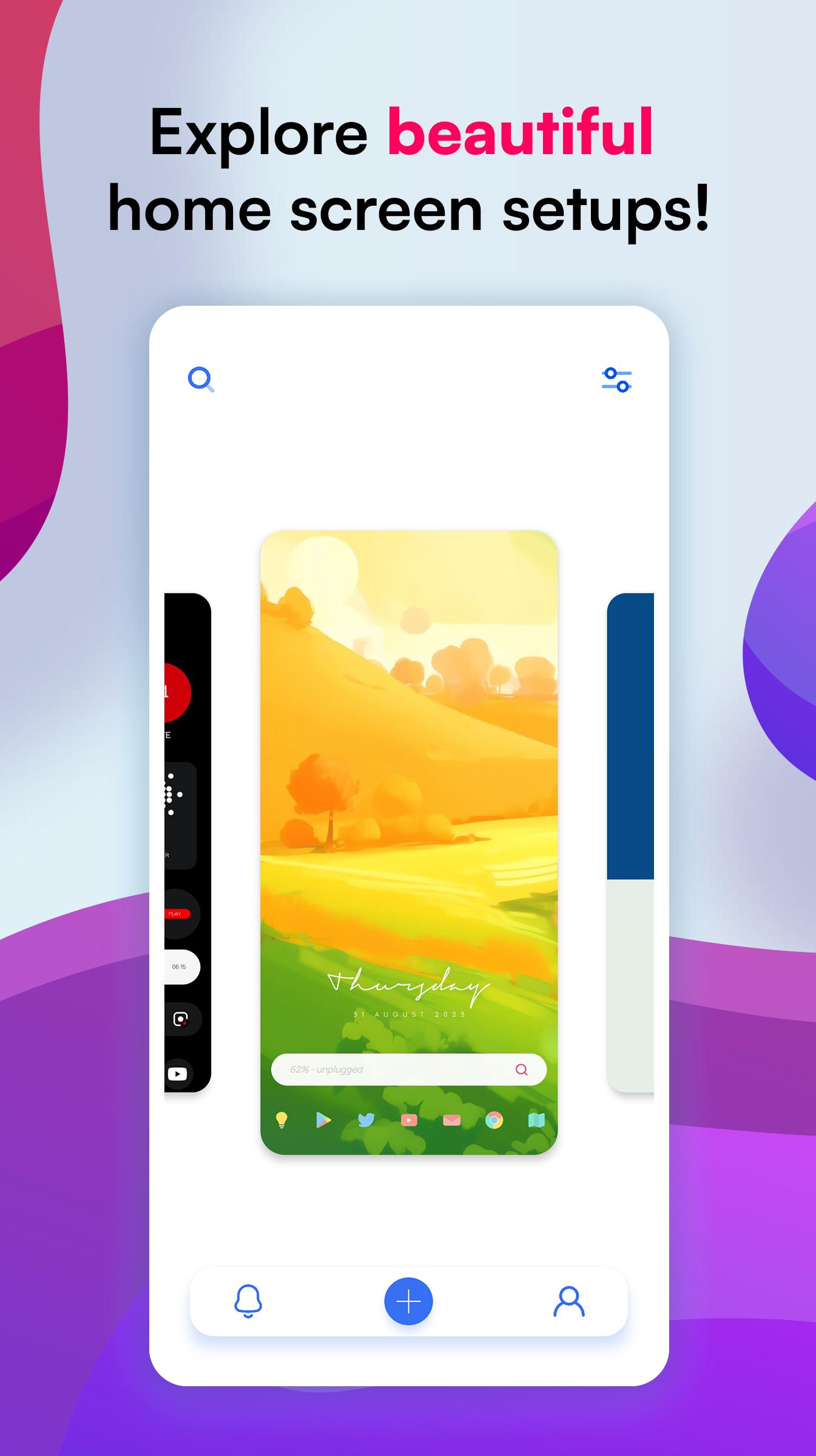 If you're looking for inspiration for an amazing home screen setup, simply swipe through the application, find a setup you love the look of and all of the information you need (i.e. icon packs, widgets, wallpapers etc.) will be available right away.