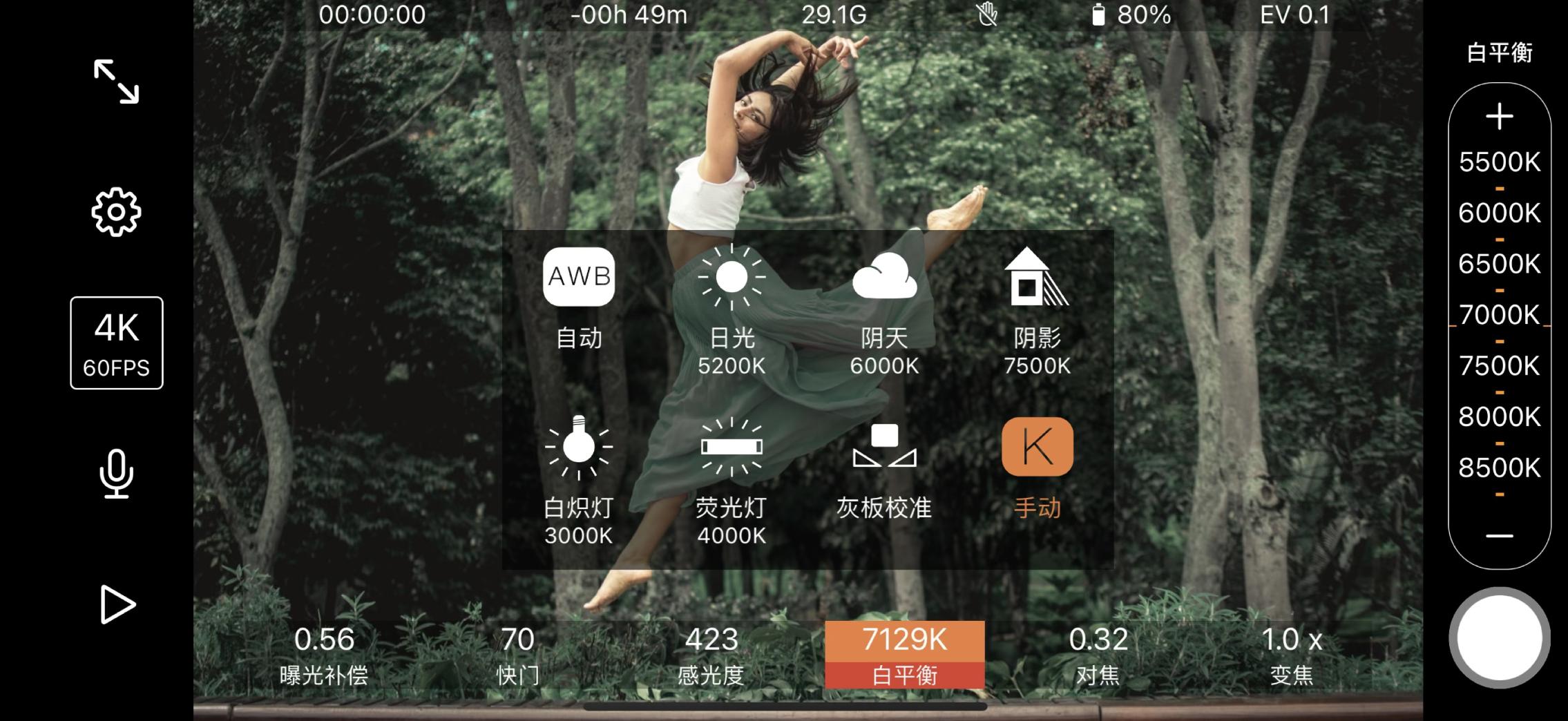 • Manual control of exposure, shutter, sensitivity, focus and white balance