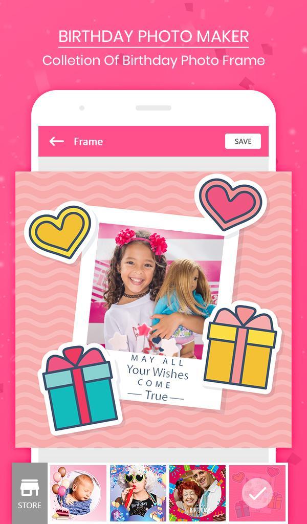 Create birthday greetings card and wish special person on his / her birthday is now more easy with using free birthday photo maker app on android. Birthday greetings card allows you to write name on cake, Wish birthday by write name on photo and add unlimited photos, cake and memes on card. Directly create birthday card and share with friends and set on status story within app.