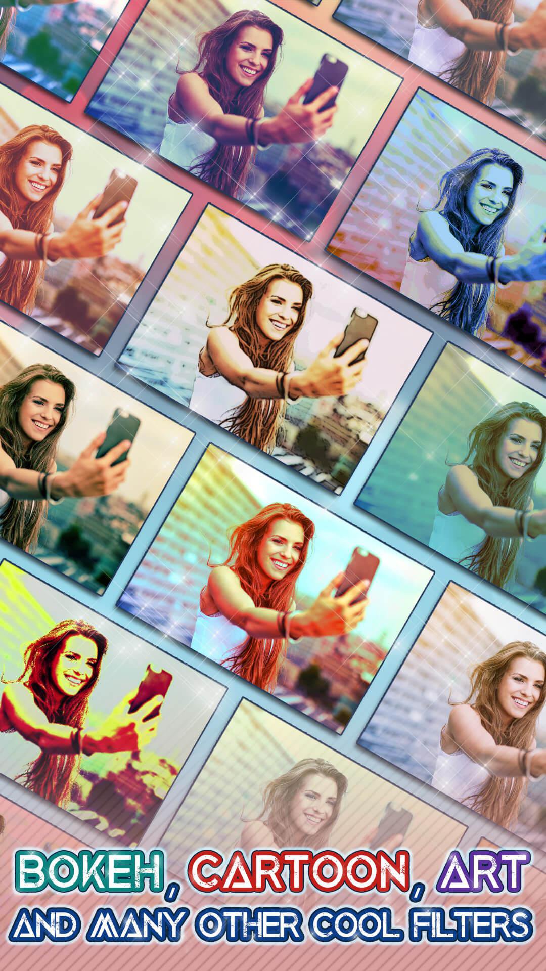 People who like picture frames, stickers and cartoon effects for pictures, and think splash photo editor is cool, should try this amazing photo editor pro called Camera Filters And Effects - Photo Editor Pro. This “picture editor app” is the photo effect editor. You can take an image from gallery or use an effect camera to take a pic. Snap a pic with your selfie camera and start photoediting. You can choose from many filters for selfies and effects for pictures. Make photo collages and photo montages, decorate your screen with a unique wallpaper. This beautiful photo maker has everything you need for picture editing. Download the “photo lab” and enjoy the latest art effects for photos.