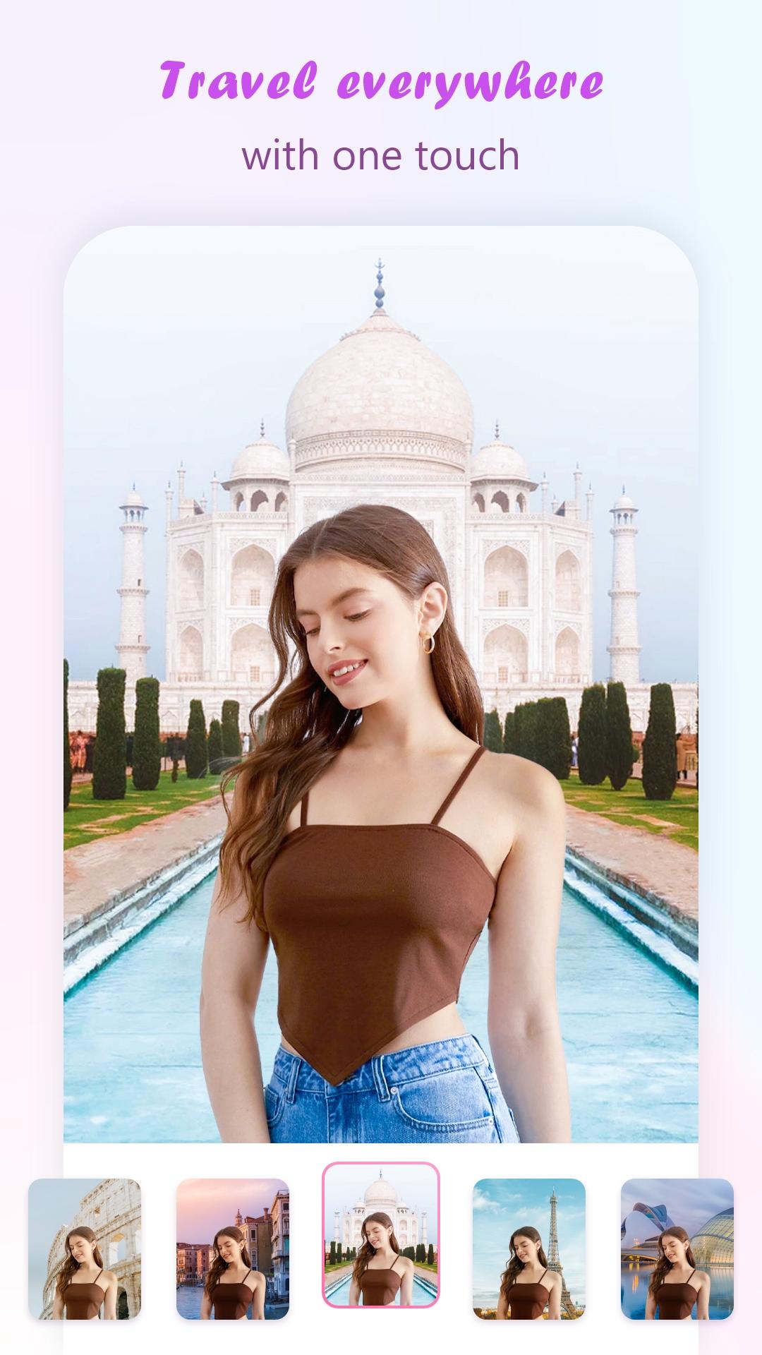 With Photo editing: Travel anywhere application, you can enhance your photos of travel moments with world-famous tourist and sightseeing landmarks to make the photo more unique. You can edit your images with different views of a place and nature, and turn your photos into real works of art.