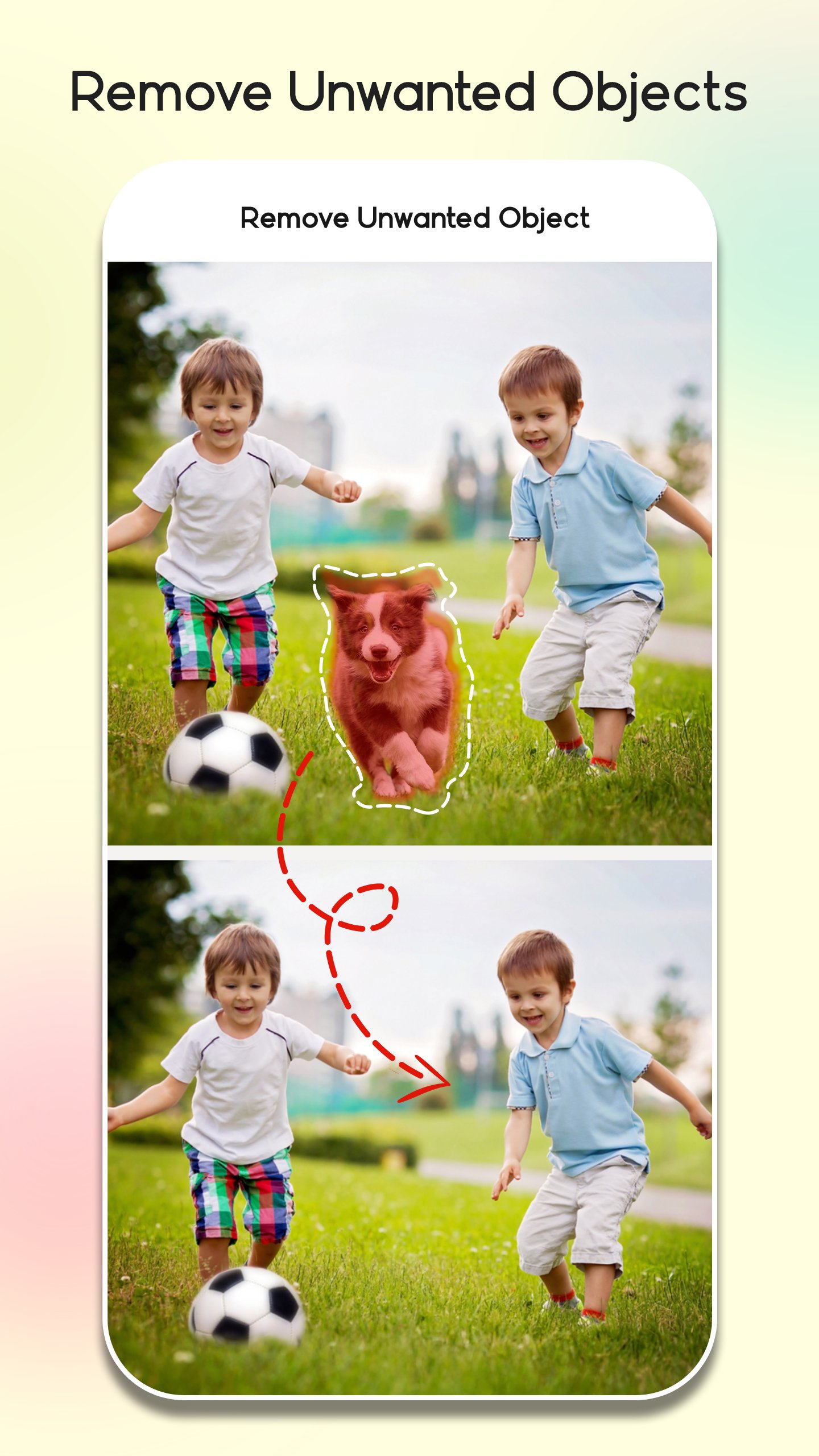 Remove objects or delete background from the photo is a smart app where you remove unwanted objects from pictures by just using brush tool and lasso tool. You just need to over line the object with a tool which is most suitable for object removal selection once the area is selected in red line it will disappear automatically.