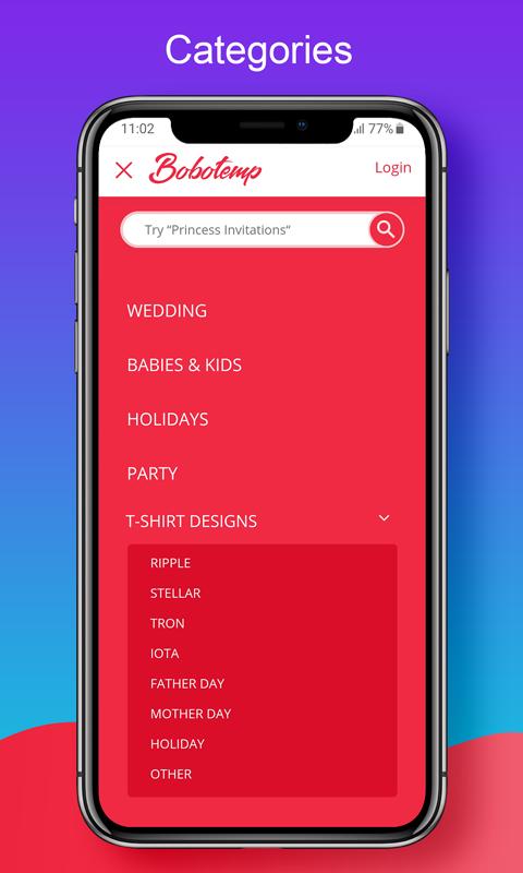 BoboTemp is an editor and visualization platform. we allow customers to edit and visualize their own purchased items. Editable - Instant Download Printable - Send Online. Accept XRP, XLM, TRX and IOTA for payment. Personalize your Birthday, Wedding, Holiday, Baby Shower, Party Invitations Template.