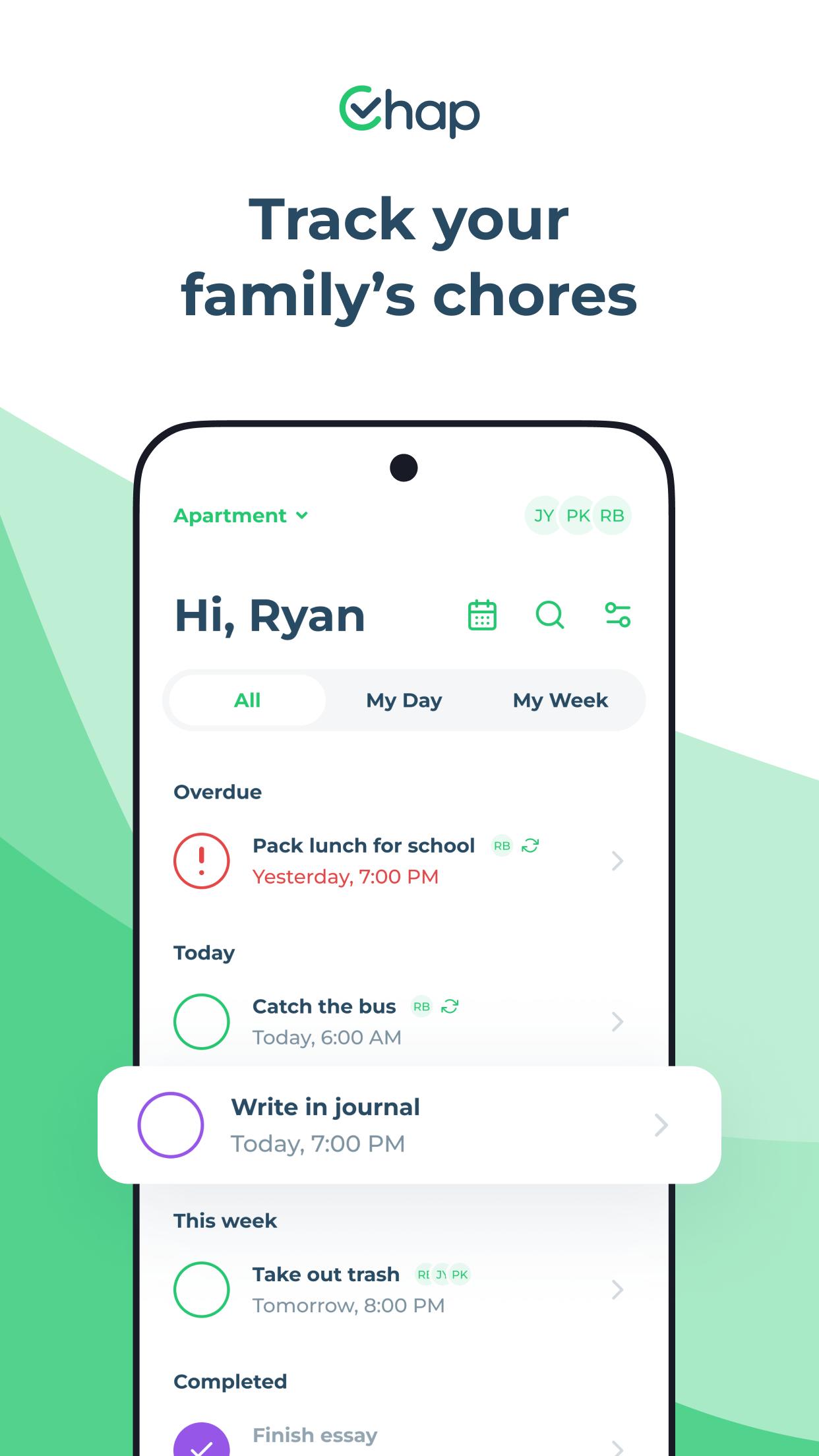 Chap helps you create a seamless cleaning schedule and chore system for your family with: