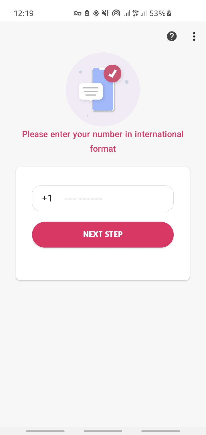 ❶ First open the app and Enter your country code then Enter your mobile number.