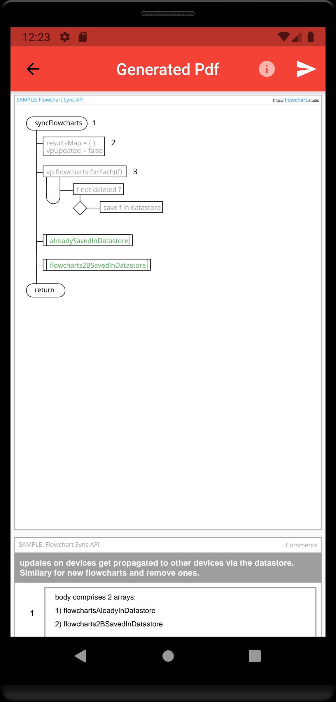 Your flowcharts are saved on your device, and can be sync'd to our Cloud, allowing you to access them from all your devices.