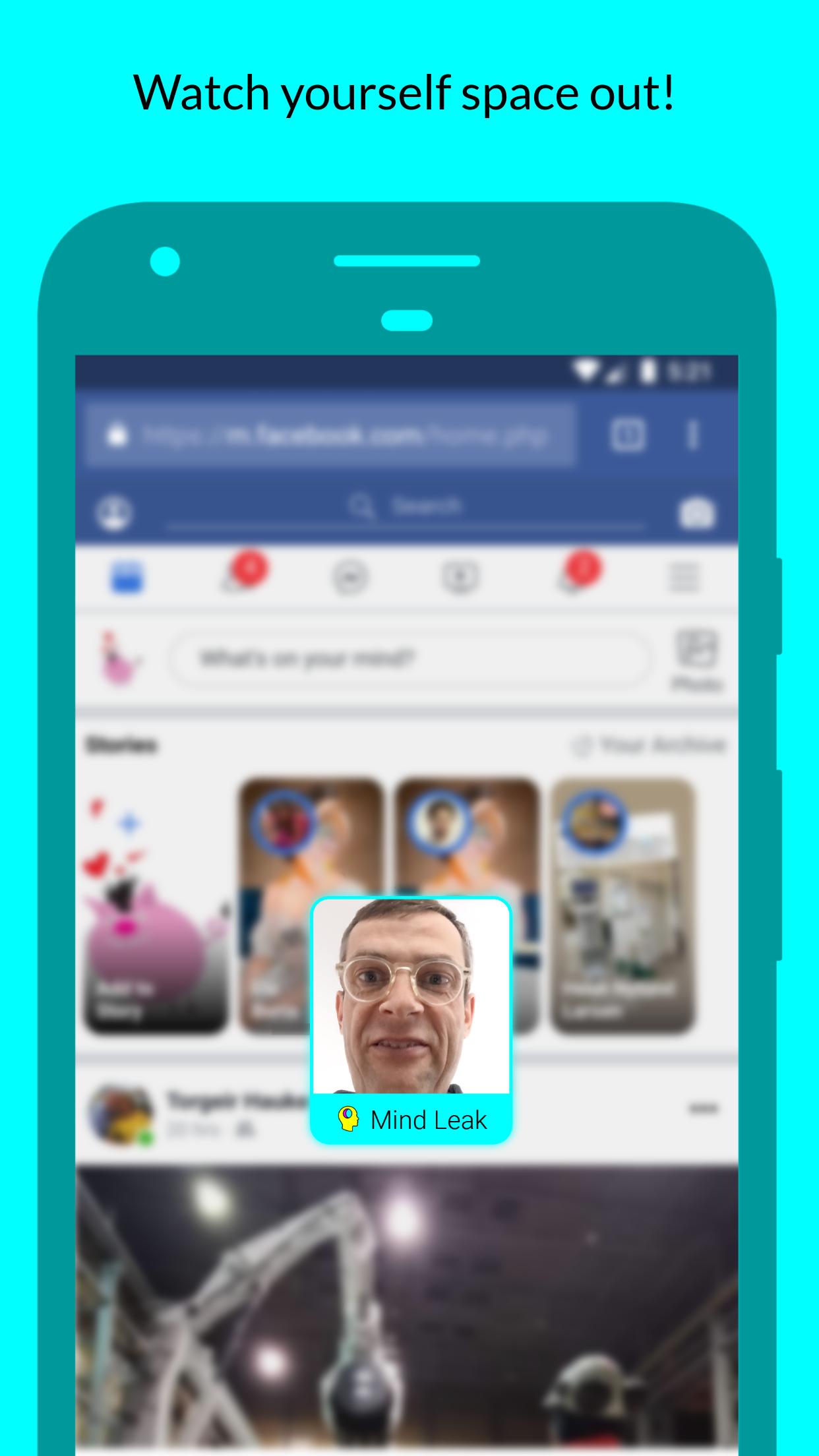 This app will make you aware of when you keep using certain apps for too long. I call this a Mind Leak. When this happens, the app will show you yourself staring into the phone (or alternatively someone else staring) as a reminder that your mind leaked. This will help you reduce your time in the apps you wanna use less.