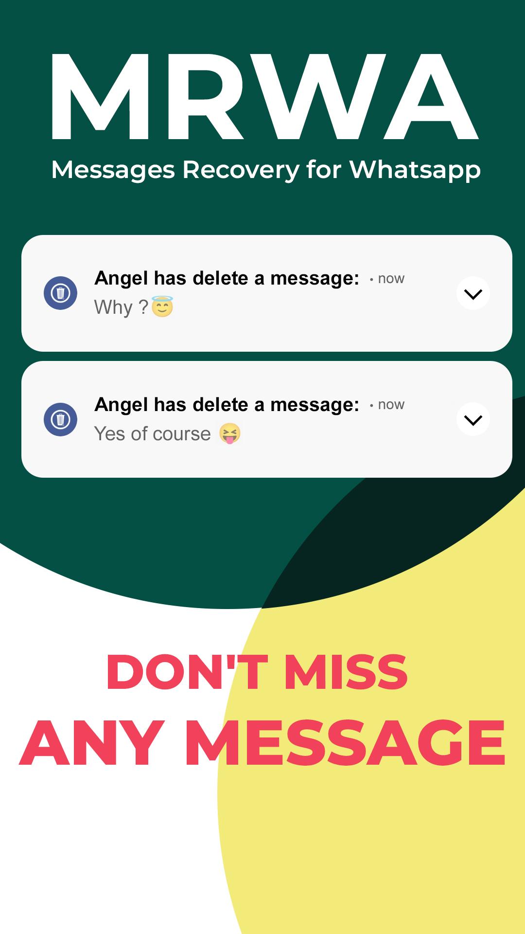 MRWA is an amazing messages recovery app for WhatsApp, it allows you to recover deleted messages and also any deleted media (images, videos, voice notes, animated gifs, audio and stickers) which is deleted before you see it.