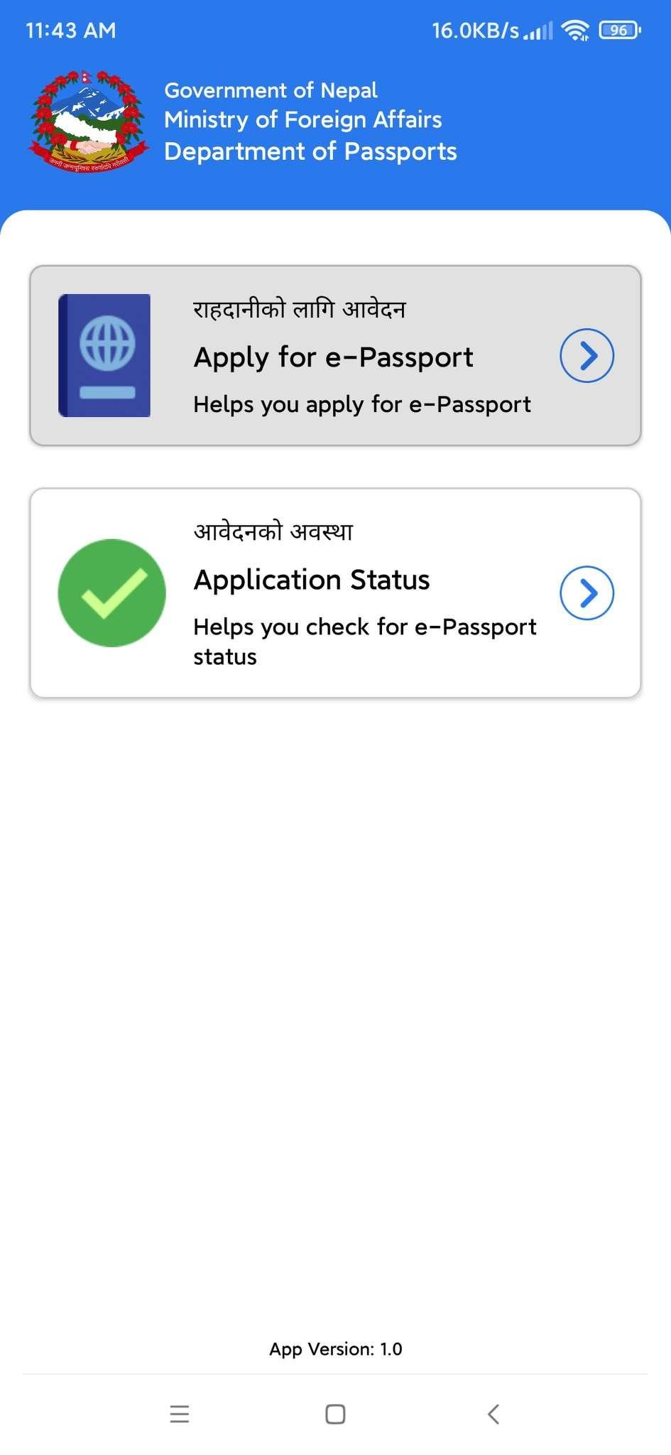 epassport app for Nepal.