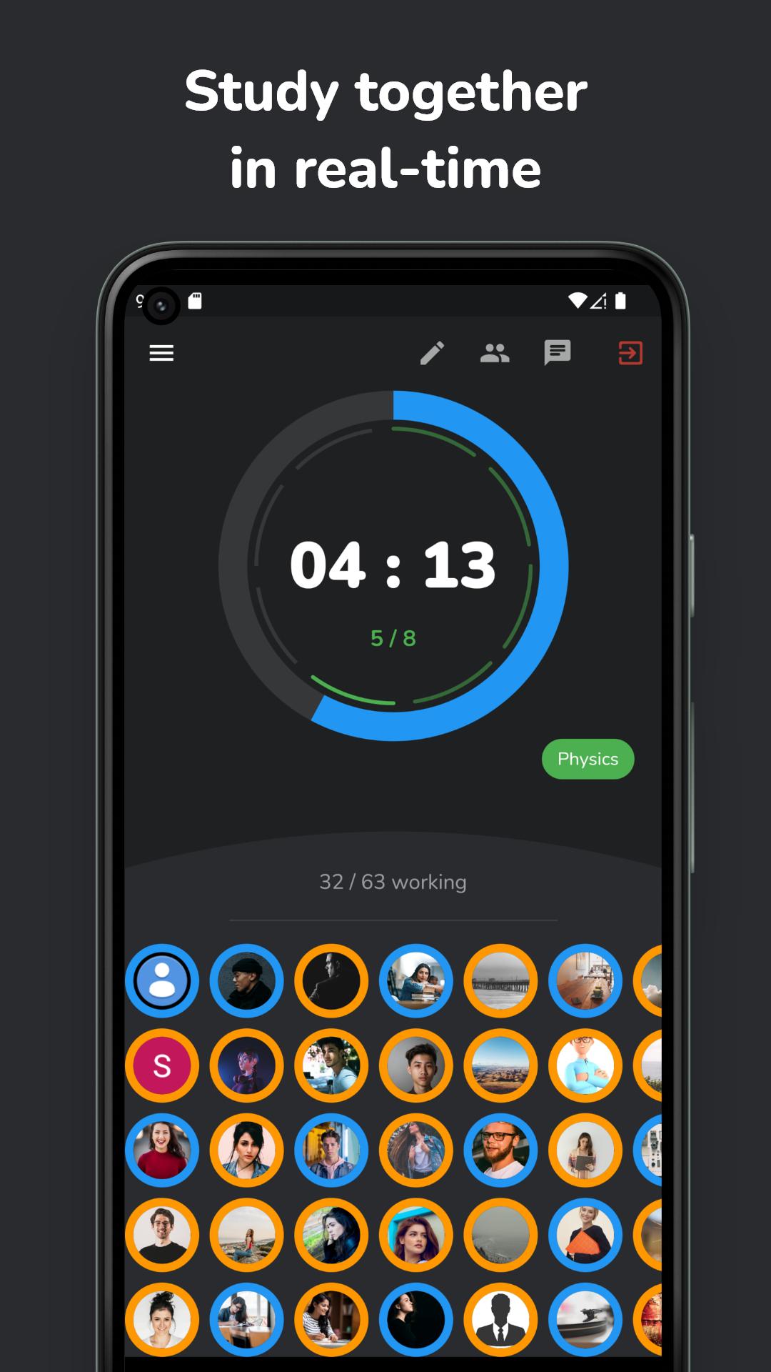 Join rooms to study with friends in healthy competition.