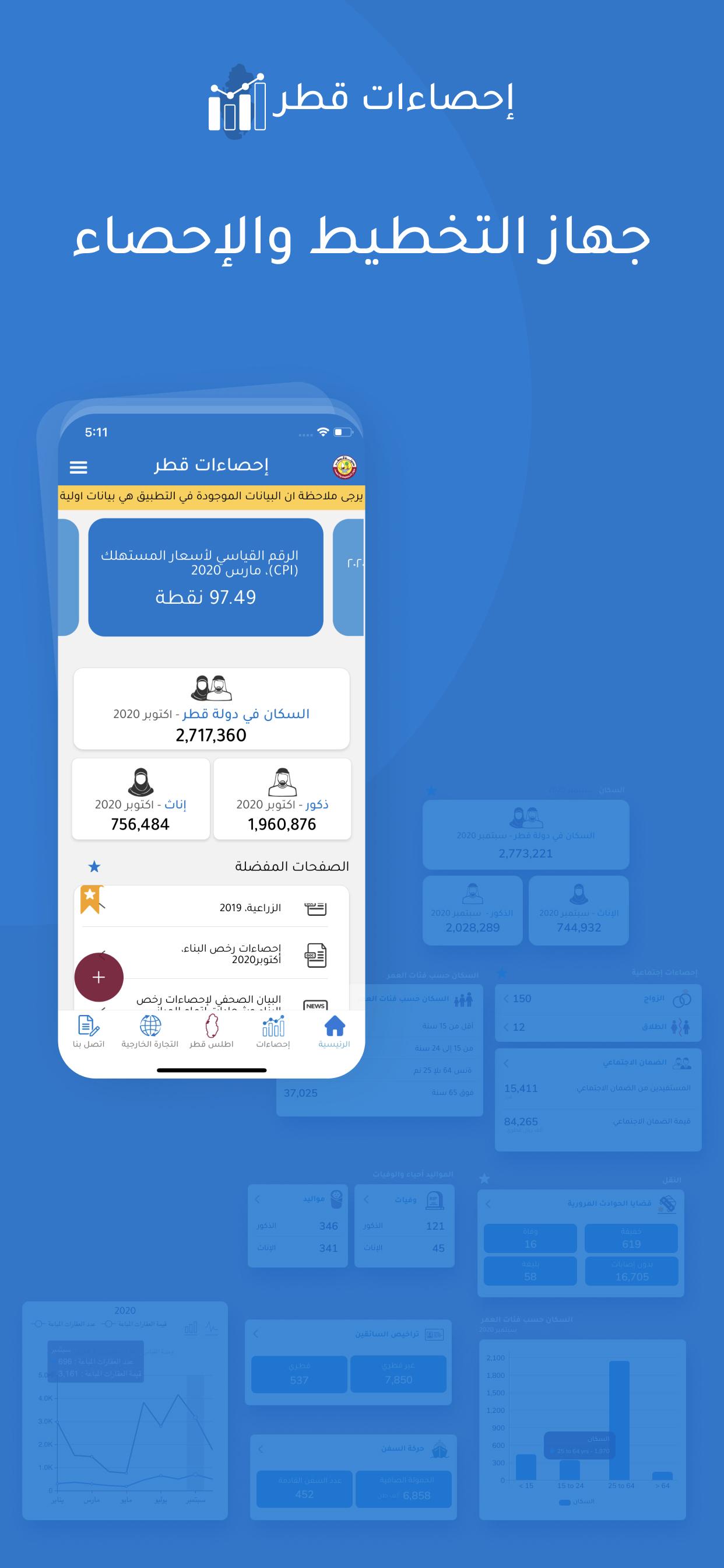 - Display the latest statistics of the State of Qatar using clear and easy-to-use charts