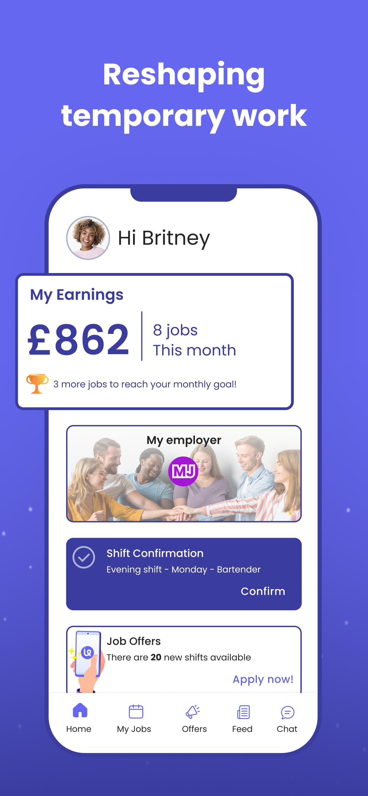 You have the control to create the flexible work schedule you want. View available jobs directly through your feed, apply for shifts, and track your booking requests. Ubeya sends you alerts and reminders before each shift and when new jobs are being published, so you won’t miss anything.
