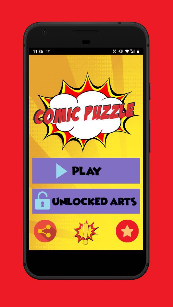 Just move the pieces to match the comic art of best comic universes of many superheroes , with a unique interface and motivational background Comic themed music !