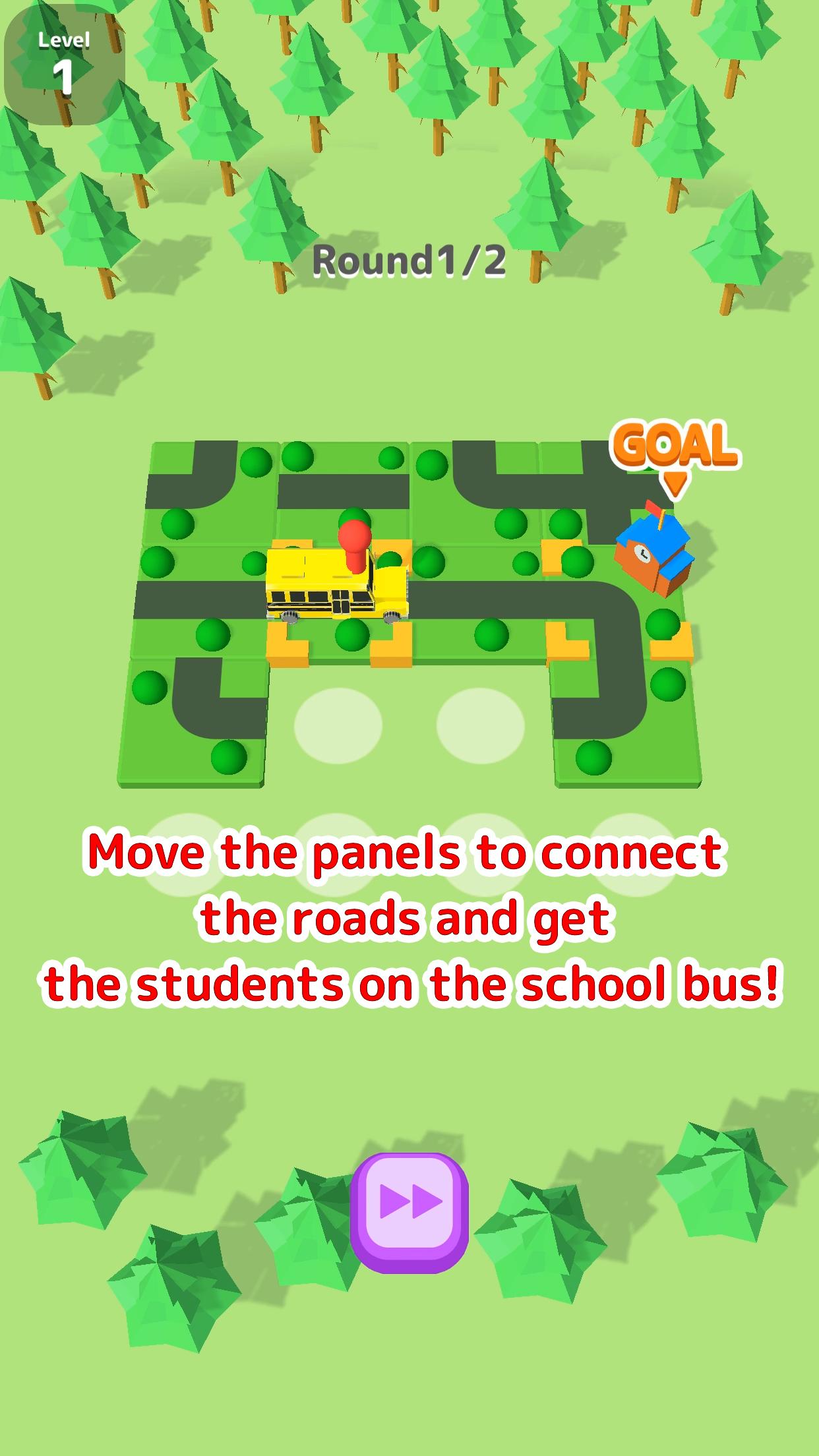 Move the panels to connect the roads and get the bus to the school!