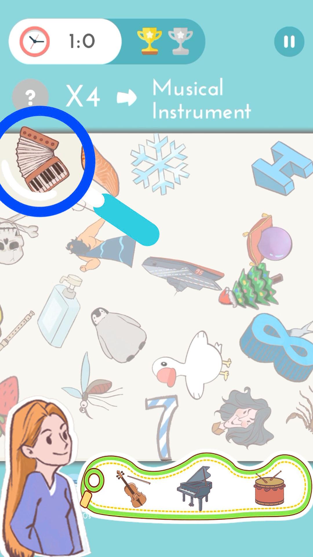 Each level has a unique keyword. Players need to find items that match the keyword among many items. And it needs to be completed within a certain time⏱️. If no items are found within the specified time, the level will be regarded as a failure. It is worth noting that finding the wrong item will have a penalty for reducing the time limit!
