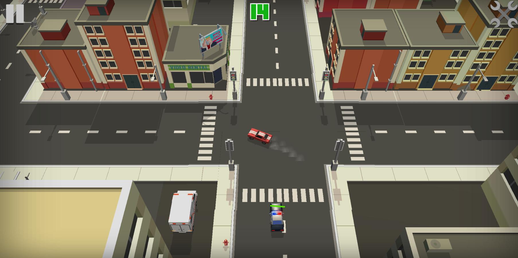 Drive your car at high speed running away from a police pursuit. Collect money and try to avoid colliding with the buildings.