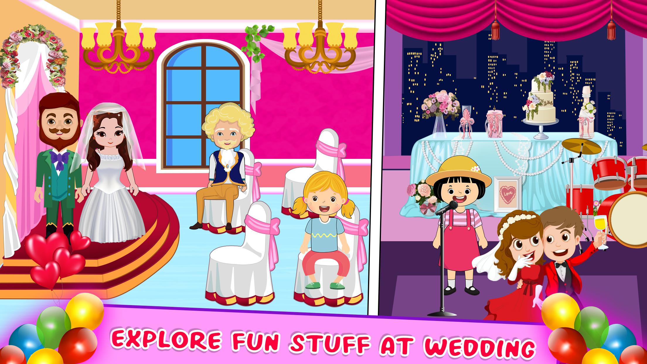 - Explore different locations & enjoy tons of fun stuff in pretend town wedding game