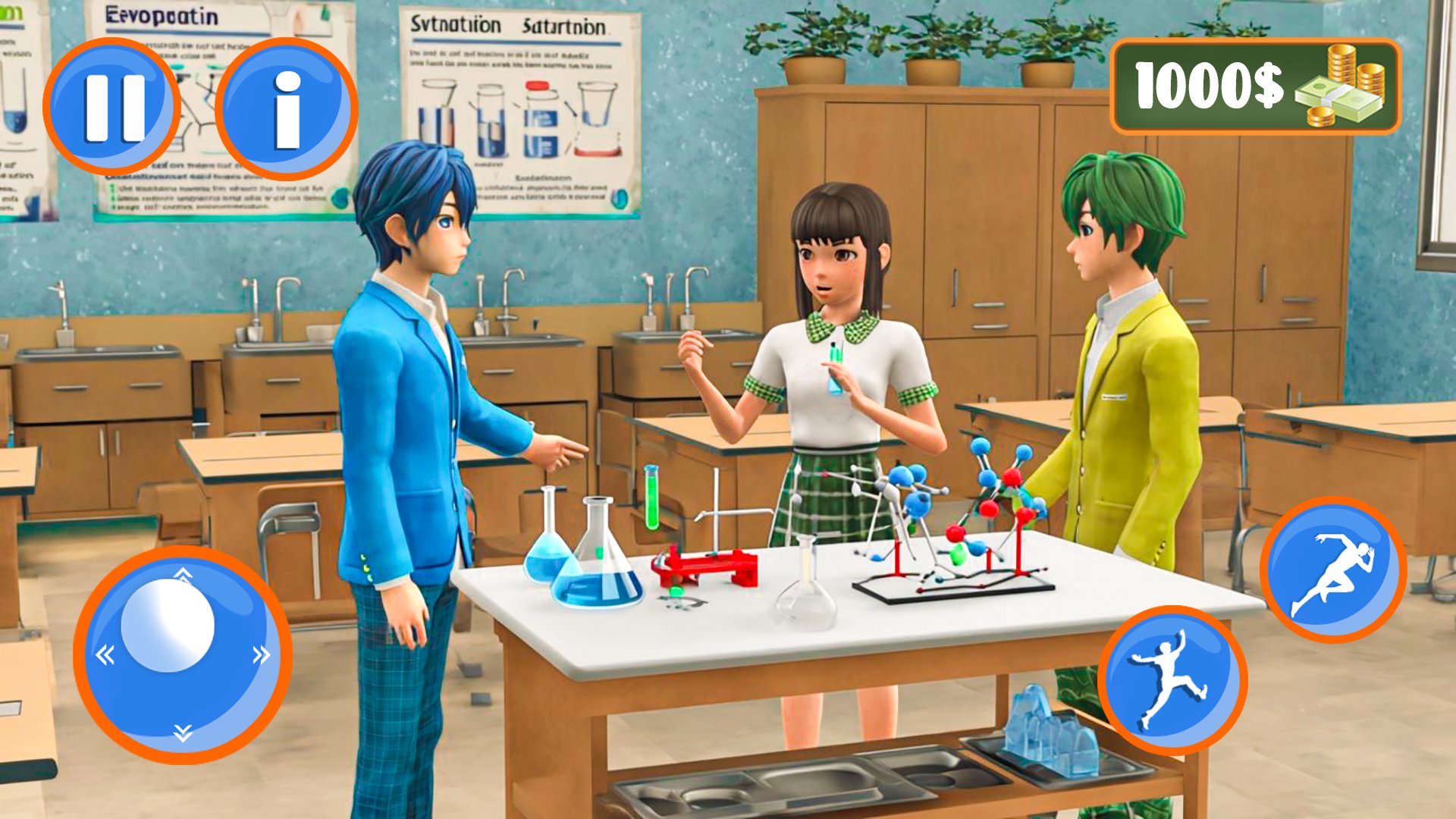 Enjoy the virtual school simulation with thrilling missions to play with. Your school campus is huge, and has many classrooms, auditorium, cafeteria, gym, corridor, etc. Meet with friends, go to the classroom and attend the lecture carefully. Lunch Time! Go buy lunch with group friends and sit with them in cafeteria. Avoid conflicts with students and enjoy your time with your friends in high school life simulation.