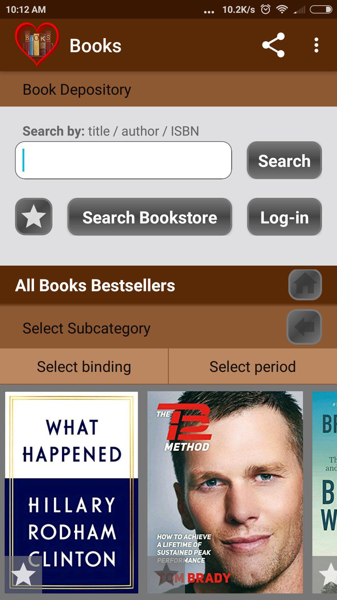 • Browse bestsellers. Select book category for which to show bestsellers. Navigate with back and home buttons.