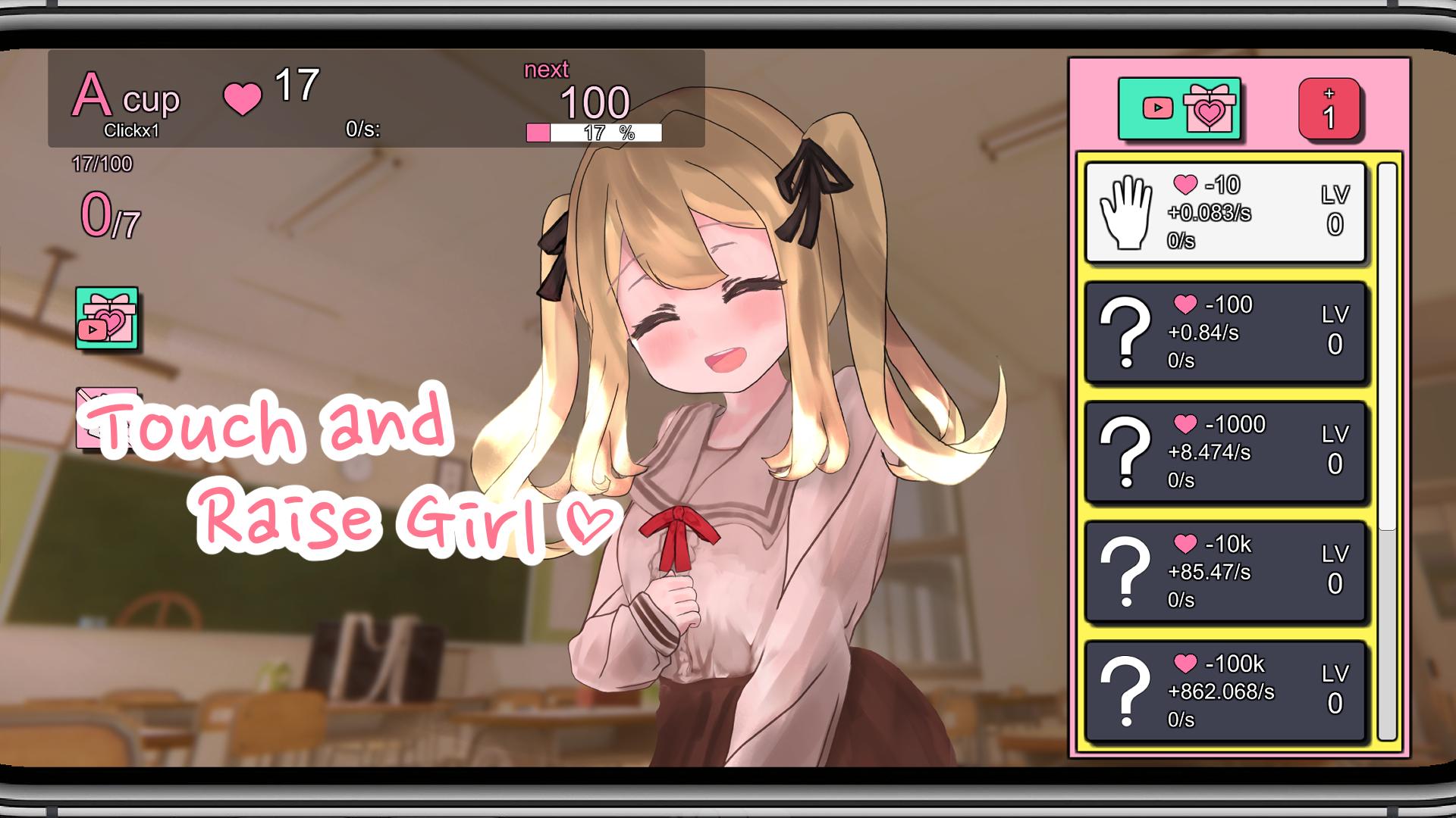 ”Boobs Growth Clicker” is for people who love blond twintail, students, uniform, sportswear, swimsuit, cute sexy girls, Tap Game and Cookie Clicker!