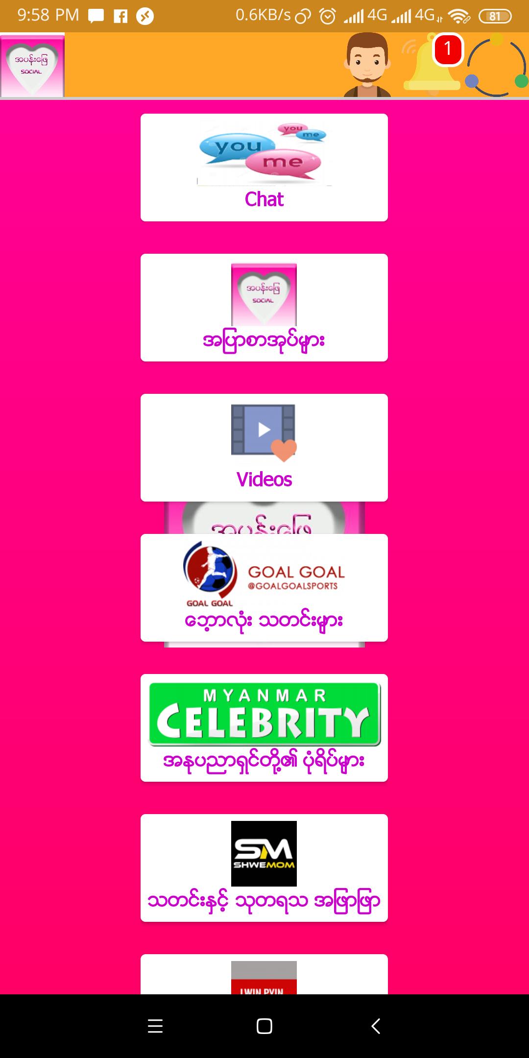 ဆက္ဆီခ်က္မလား ခ်ဲဂဏန္းေဆြးေႏြးမလား သတင္းေတြ အတင္းေတြတုတ္ၾကမလား Chat လို႕ရတယ္ေနာ္...