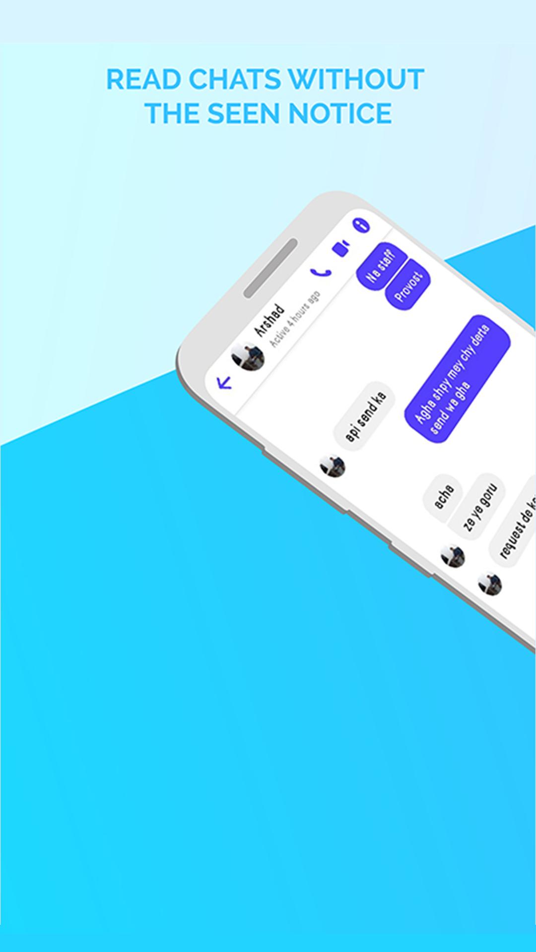 Unseen & Hide blue ticks are the best app to read hidden chat without read sign. Unseen No Last Seen No Blue Tickused for all social apps chat. Now you can easily read messages without making double blue tick marks, no last seen or appearing online.