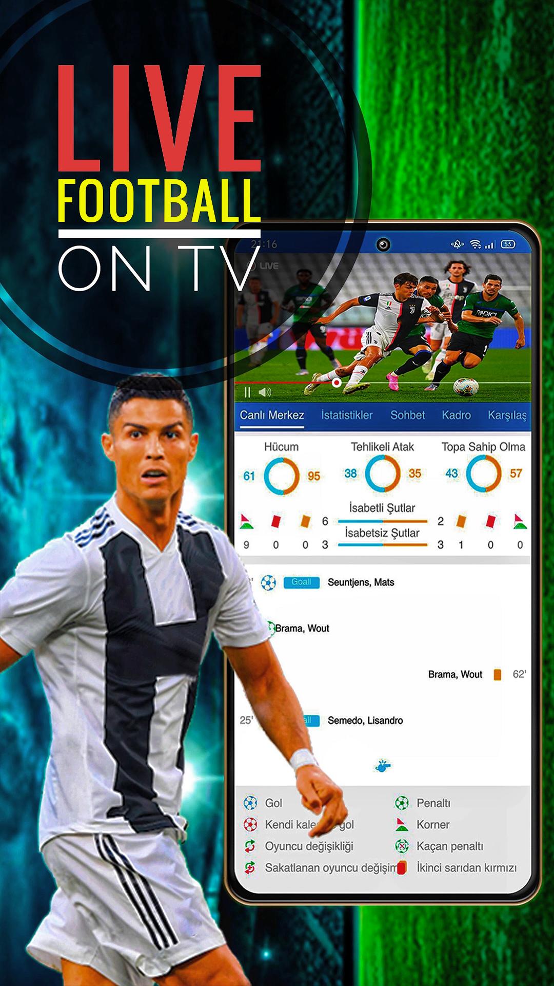 Watch free live football on your mobile phone. Enjoy live streaming of Football-soccer matches without having to worry about monthly subscriptions or charges. Keep up to current on football results, news, and other football-related information. On this free Football TV channel, you can watch all international League matches in HD quality.