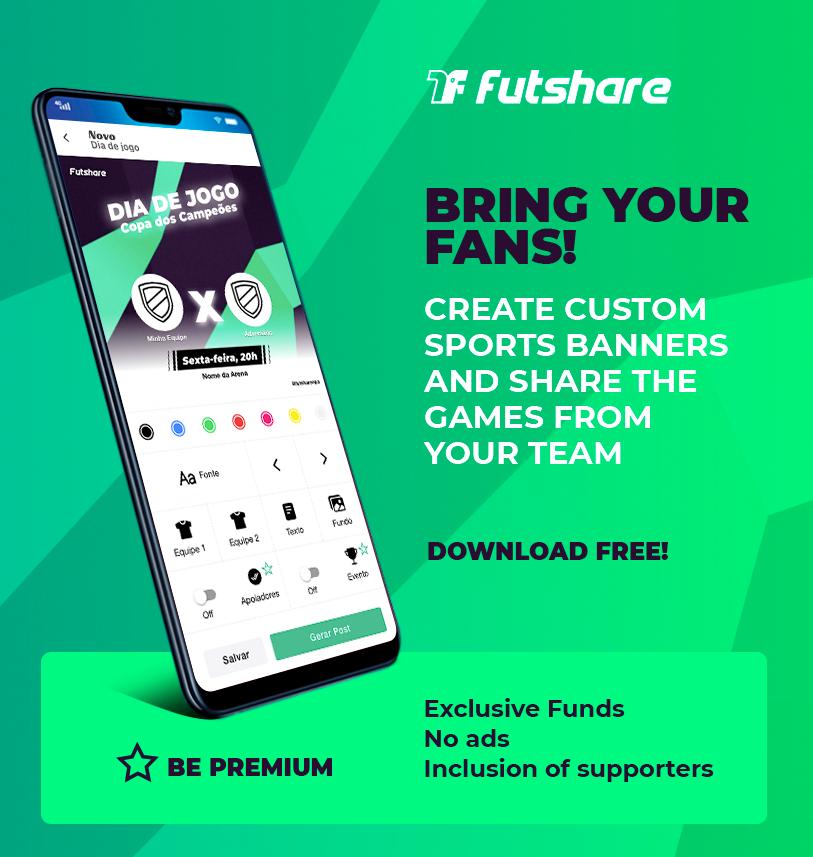 Create game day artwork, final scoreboard with match result, lineup with placement of players on the field, and playmaker for the player who stood out, all customized with your team's shield and exclusive backgrounds.