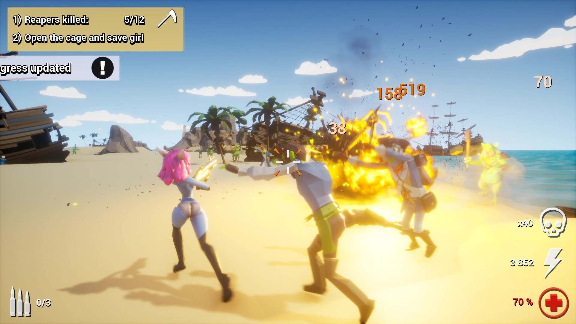 Sometimes a little zombie killing and demon slaying is all you need, but a dash of naughty flavor to spice things up certainly can’t hurt, right? In Hentai vs. Evil, demons have invaded the city, the suburbs and even the beach, turning the residents into flesh-eating zombies and throwing cute girls into cages. It’s time to stop the madness! Rescue those girls, have them join your ranks as you take down the source of evil in a rain of bullets and look good doing it!Features: