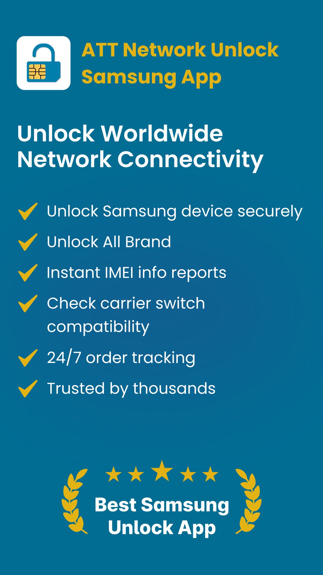 🔓 Unlock your Samsung phone with ease and confidence! Our app offers a range of unlocking options, including free and premium unlock codes, remote unlock codes, and IMEI unlocking. Whether you're looking to unlock the latest Samsung models or older devices, we've got you covered.