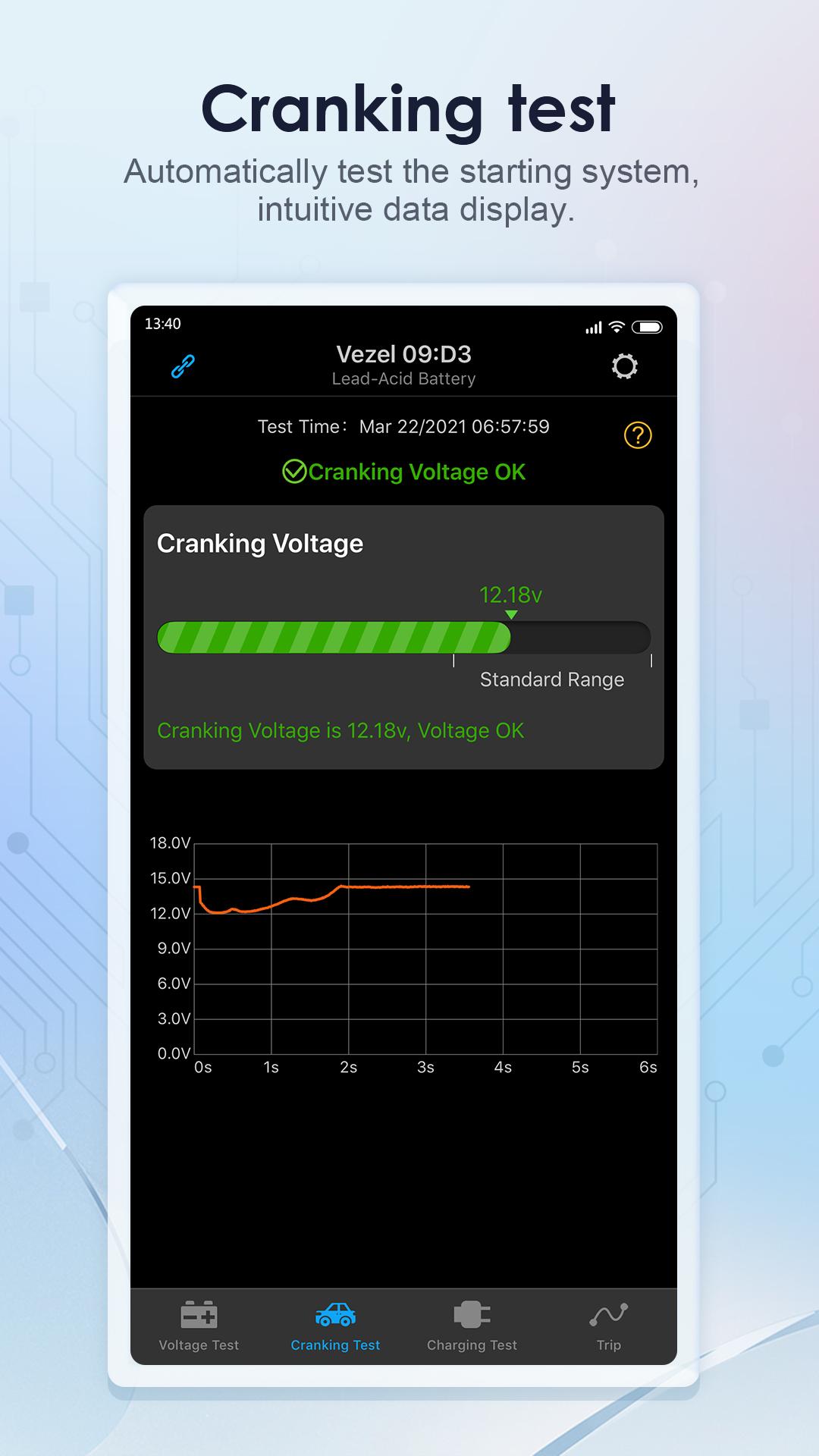 Battery Monitor BLE is an application for car battery monitoring, which can monitor the real-time voltage of the car battery; count the historical voltage of the battery; it can automatically test the battery startup voltage, and support idle and high-speed charging tests. All data is synced to the mobile app via Bluetooth.