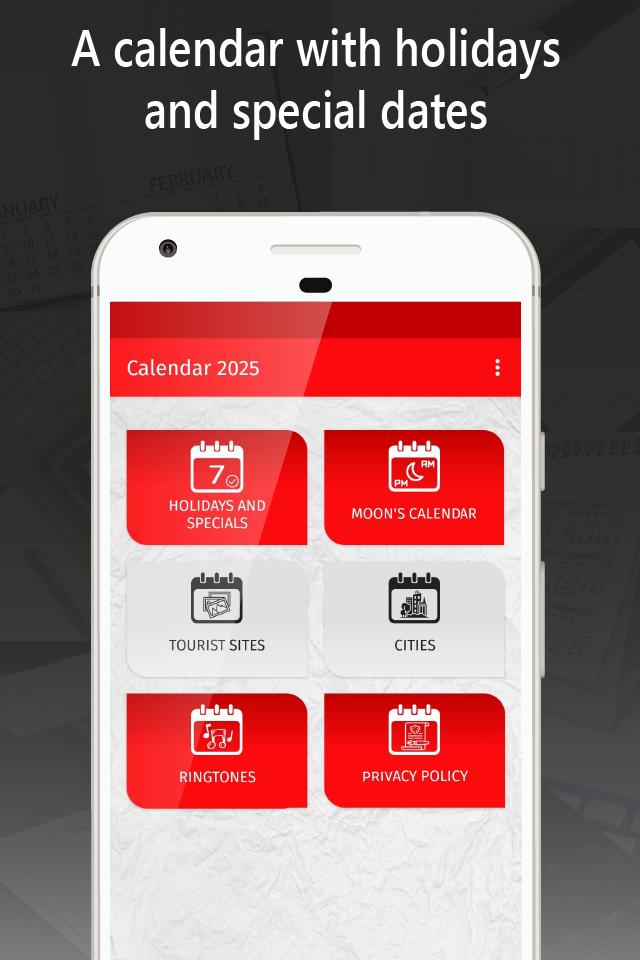 So, ¿what are you waiting for? Download now your calendar with holidays 2025. And please don´t forget to share and comment in Play Store; your opinion is so important for us and help us to continue developing more Apps.