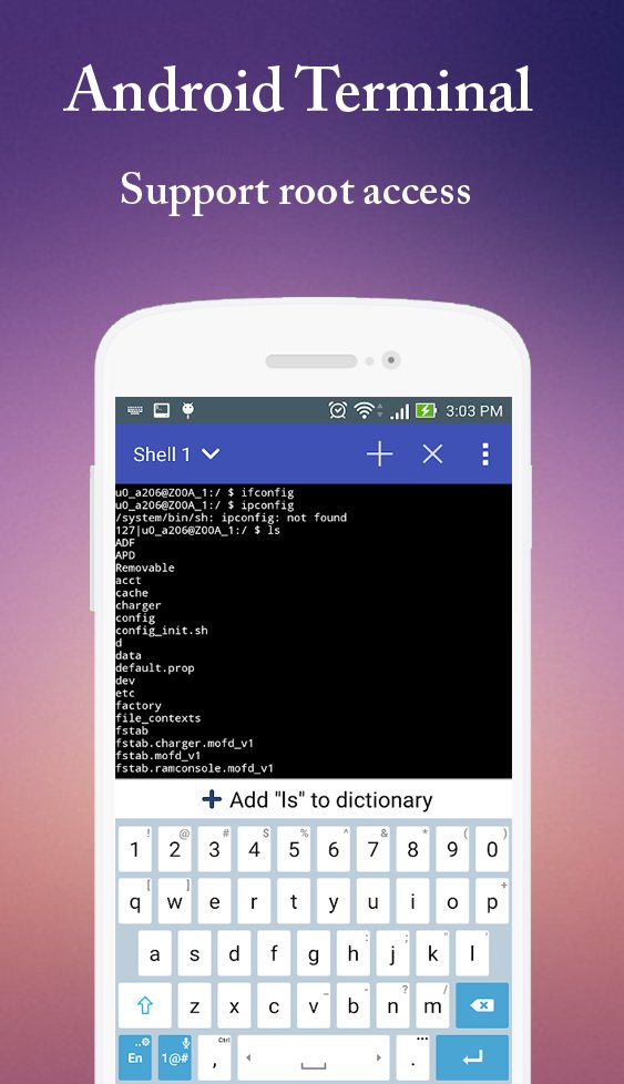 Terminal, Shell for AndroidTerminal, Shell,Command Line for android has features :