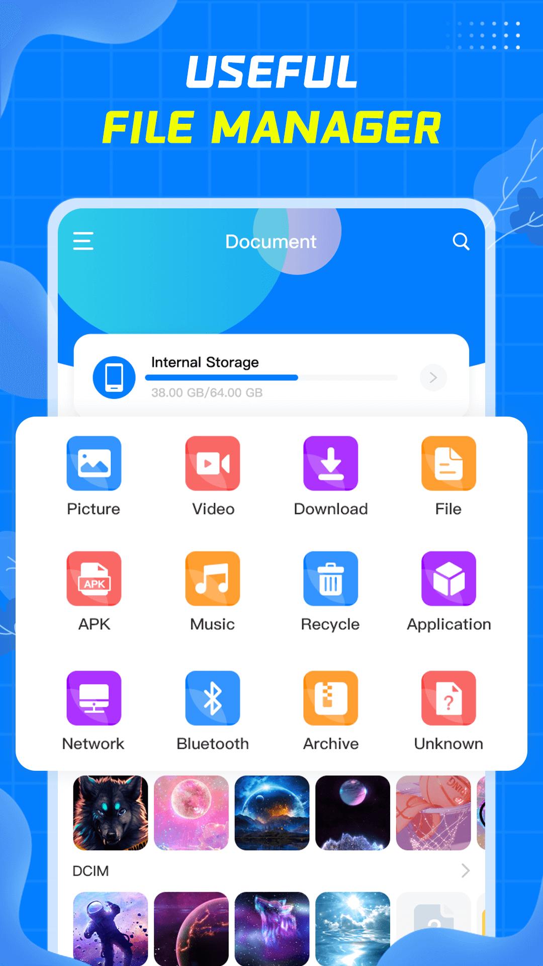 - Easy File Manager automatically categorizes files, including Picture, Video, Download, Apk, Music, Arctic, allowing you to quickly find the files you are looking for.