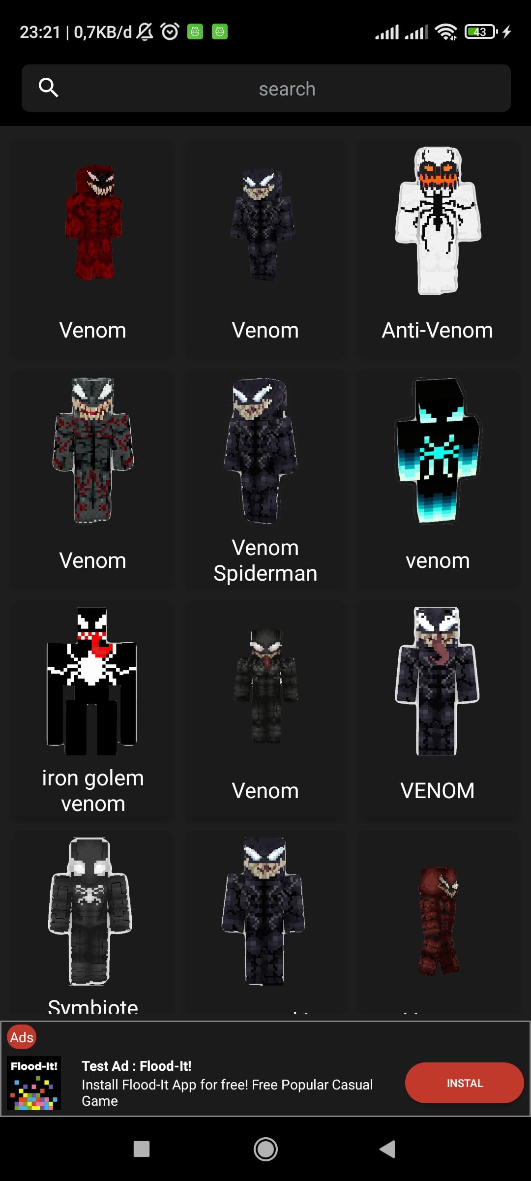 Venom mcpe mod textures for MCPE. skin mcpe hd, Venom skin, all this will be available in skin mcpe 4d Minecraft World Bedrock. Venom mod skin for minecraft is a style and trend. This Venom skin is an application that can complement your Venom craft game.