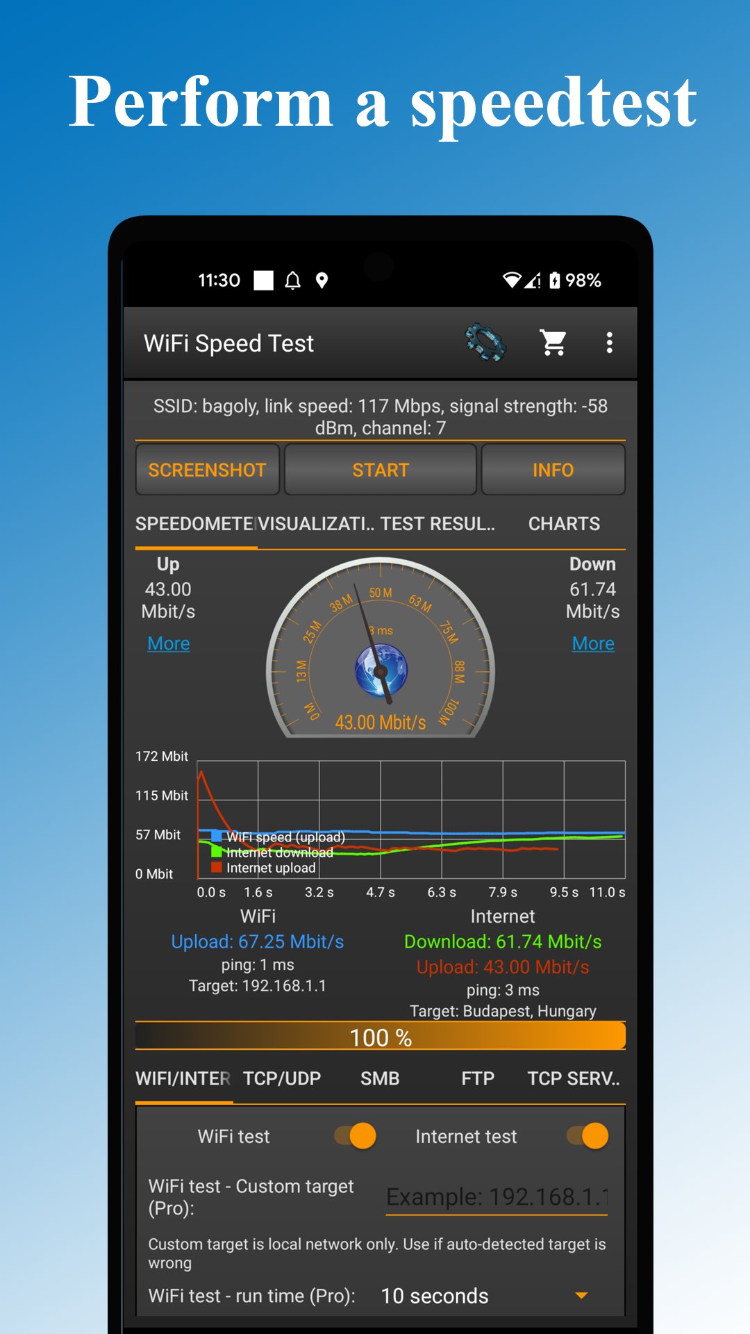 Important: This is not an Internet speed test app! (however you can test the Internet speed as well, but this is optional)
