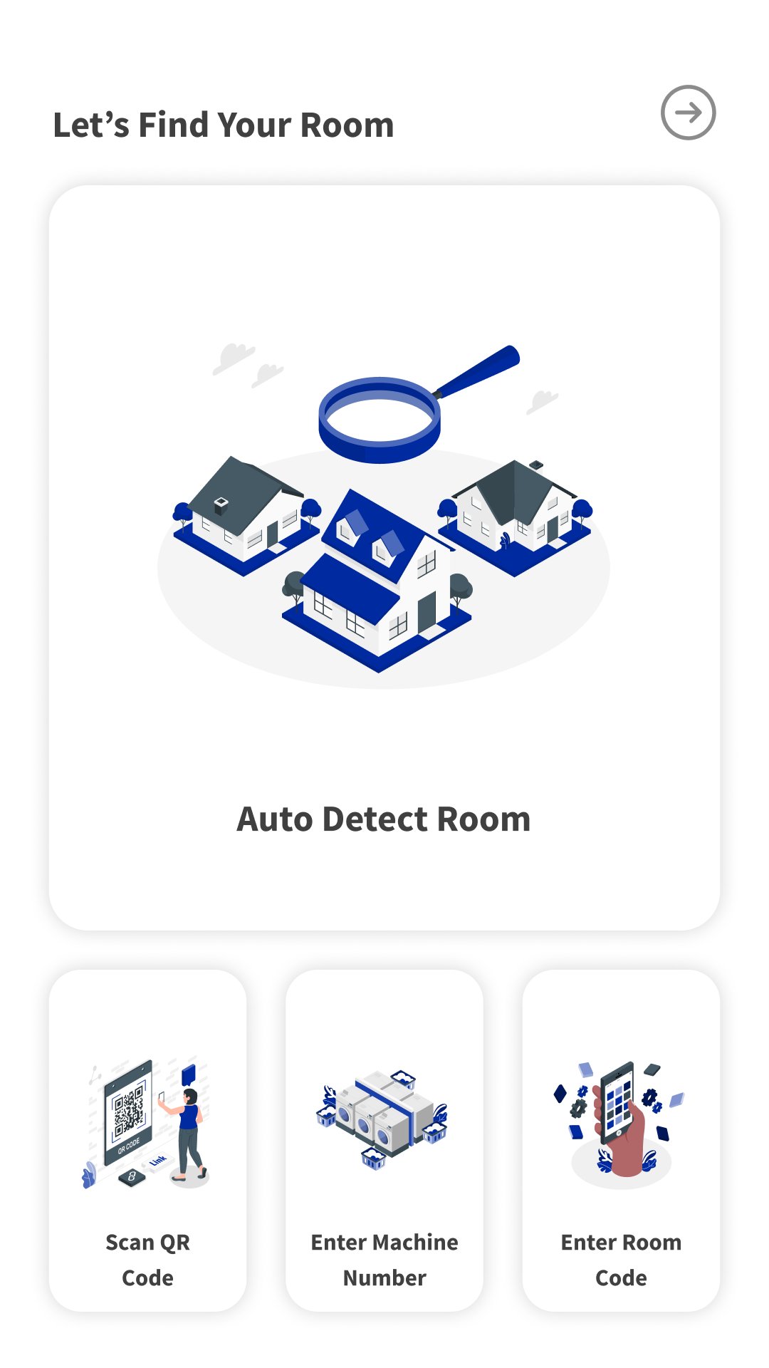 • Scan the QR code of your laundry room (one time process)