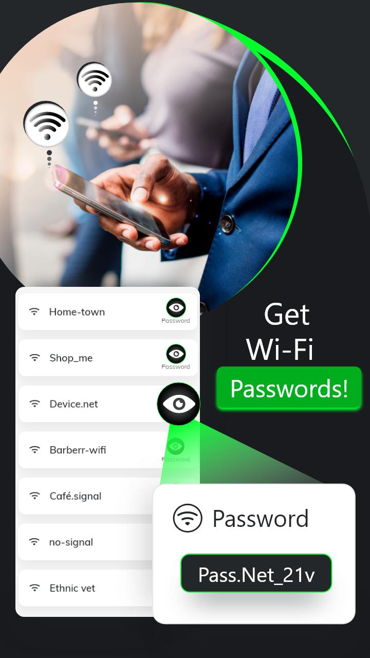 Show wifi password software displays all the passwords for all the wifi connections that have ever connected to your device. Wifi password master- connect without password.