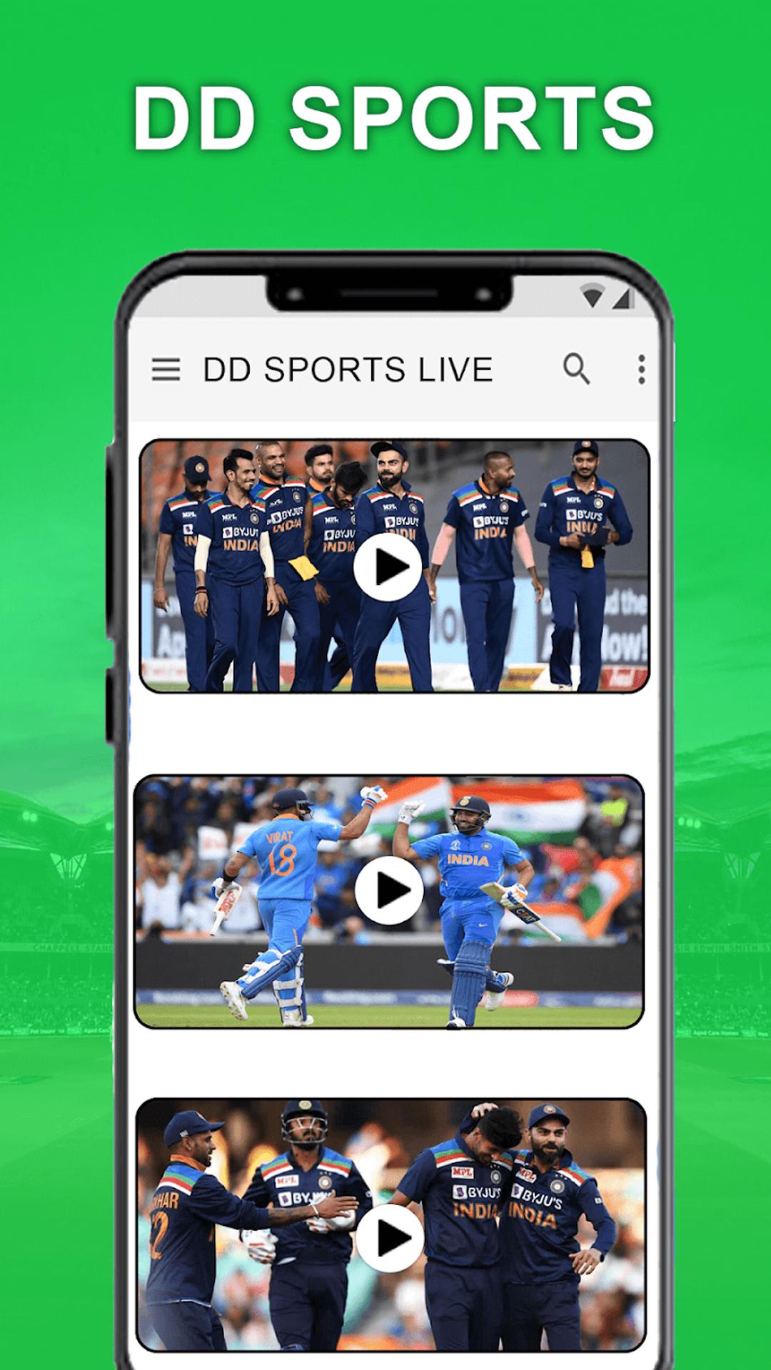 Watch live Cricket with HD streaming, live score and High lights, Enjoy live video streaming of all Cricket matches & Sports for free. This app is bringing you live action, reaction and exclusive coverage of Cricket from all over the world. DD Sports streams International Cricket Series, ICC, World Cup 2022, scores, One day International(ODI), Test matches, Indian premier League (IPL), Bangladesh Premier League(BPL), T20, Ashes Series, Big Bash League, England & wales. Enjoy live sports matches schedule and live cricket scores free on your mobile. DD Sports app has cricket matches schedule of India, Pakistan, Austrailia, South Africa, Siri Lanka, Bangladesh, Afghanistan, New Zealand, West Indies, Zimbabwe, Ireland, England.