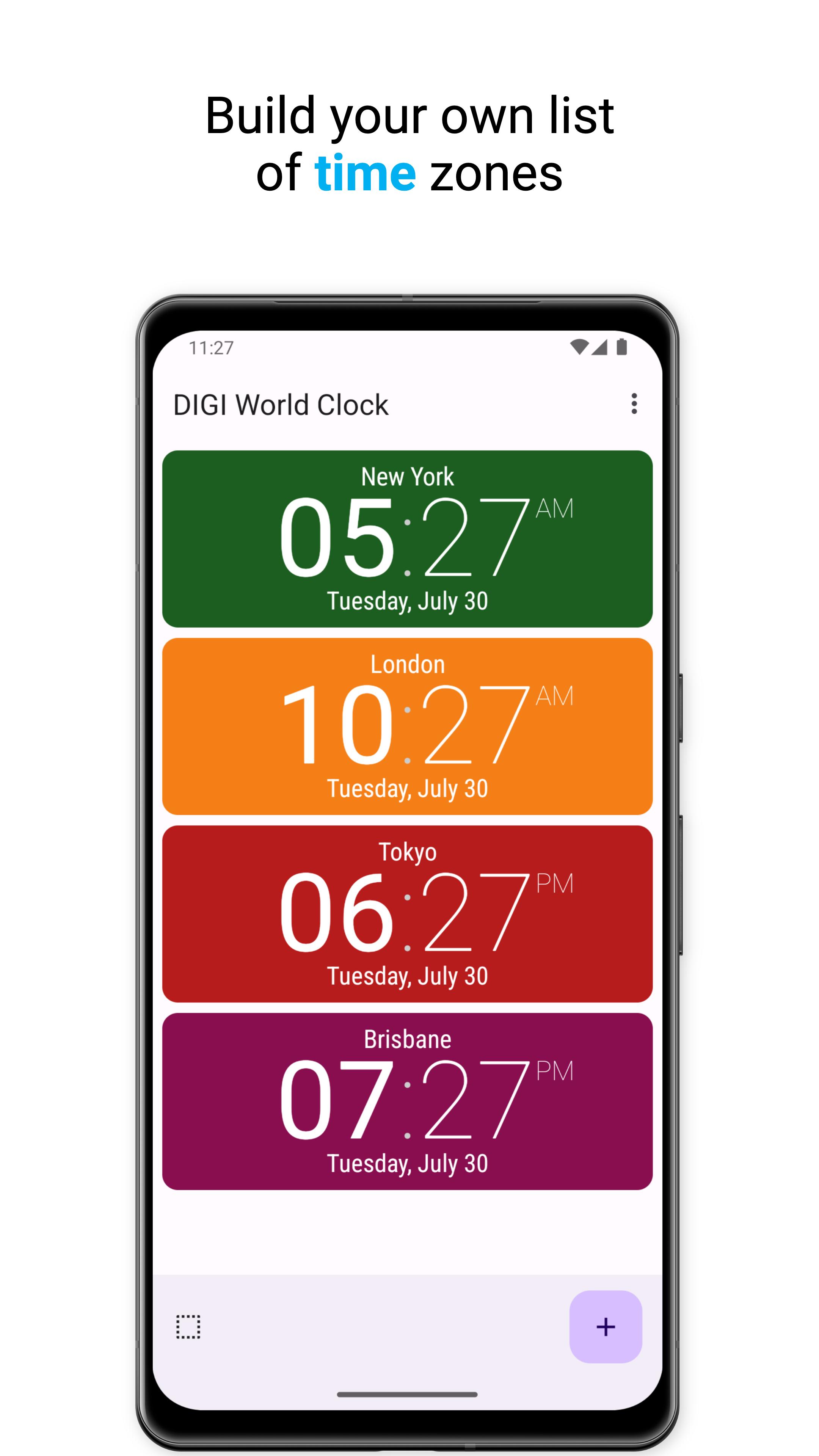 Want to know what time it is anywhere in the world? Do you want to have the time quickly and clearly available on your mobile phone, just the way you like it? Try DIGI World Clock!
