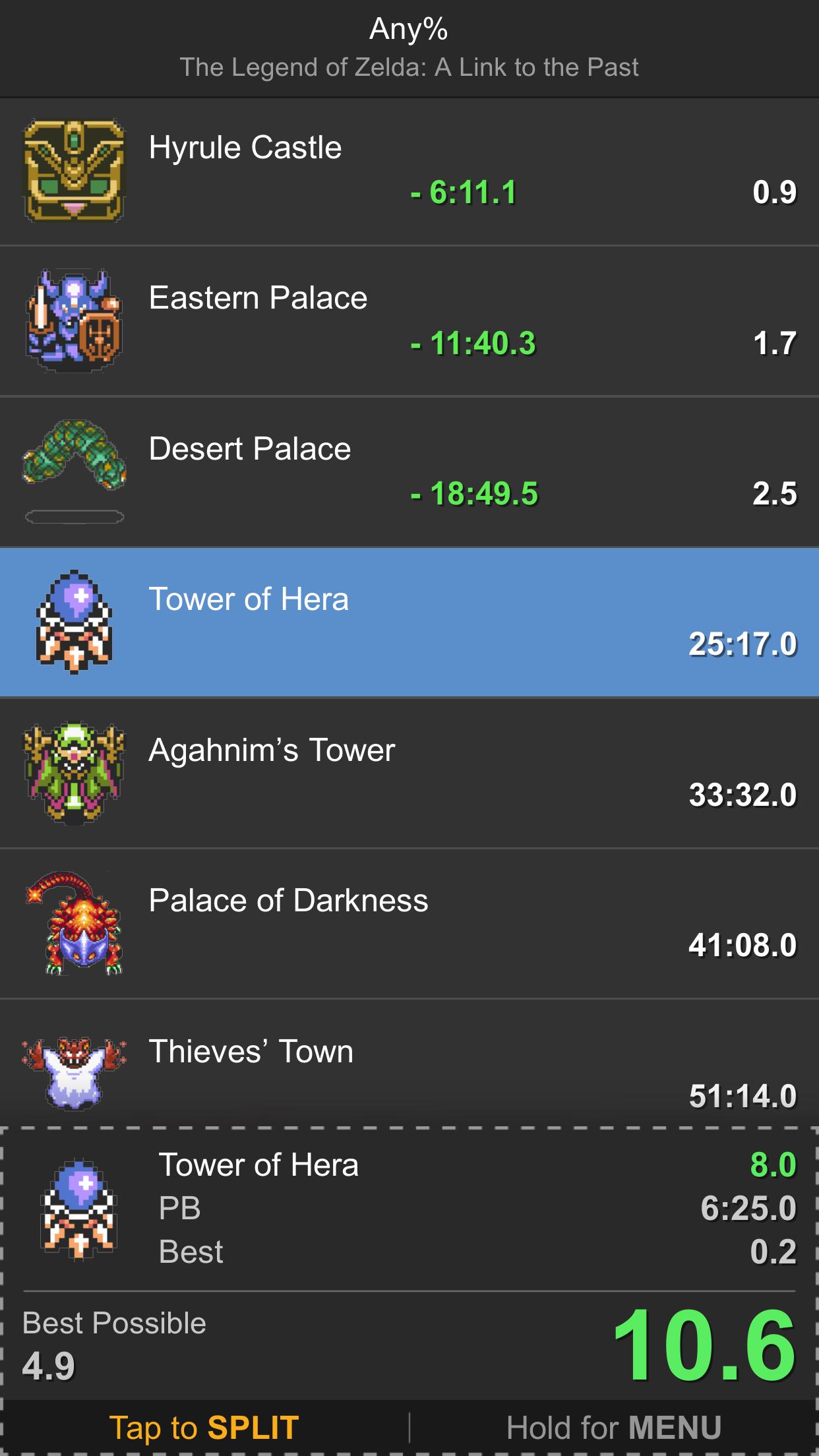 Finally a mobile speedrun timer that gives you all the features you would expect, while freeing you from the shackles tying you to your computer.