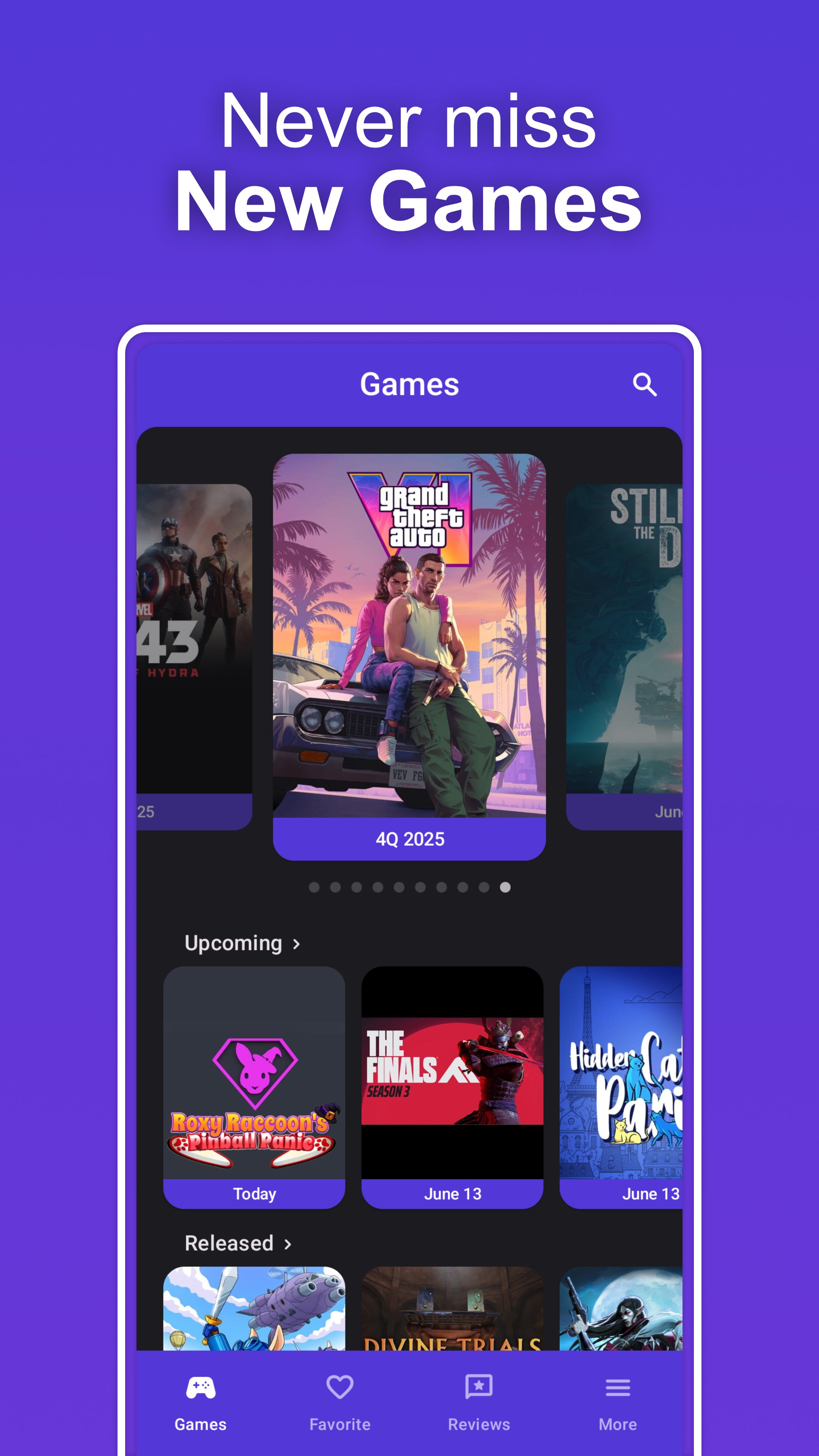 Simply favorite games you are looking forward to to keep track of and view these games in a variety of widgets.