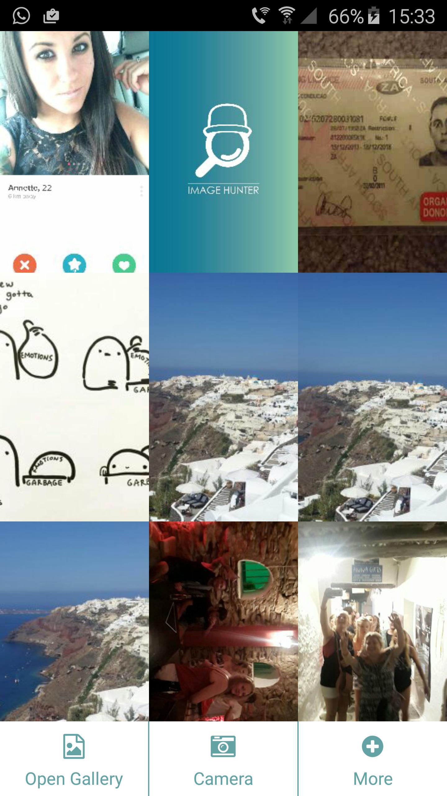 Image Hunter allows you to upload an image directly from your mobile device and find other existing sources of the image on Google. Image Hunter can be used to verify the source of photos, screenshots, Whatsapp pictures, memes and even help spot catfish on dating services such as Tinder. Simply select an image on your device and let Image Hunter find it for you.