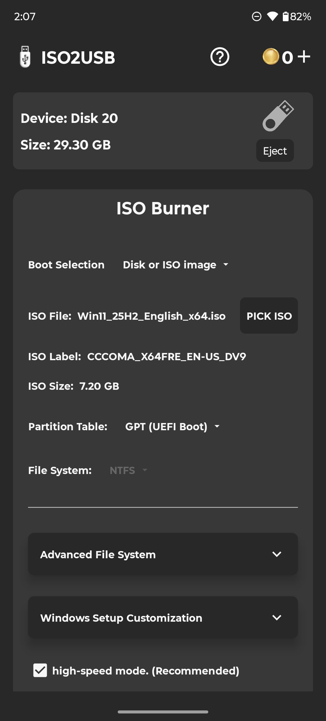 ISO 2 USB is a standalone ISO burning utility built for Android. Whether you're preparing a bootable Windows installer or flashing a Raspberry Pi image, ISO 2 USB gives you full control over partition schemes, file systems, and image handling. Designed for speed, precision, and manual configuration.
