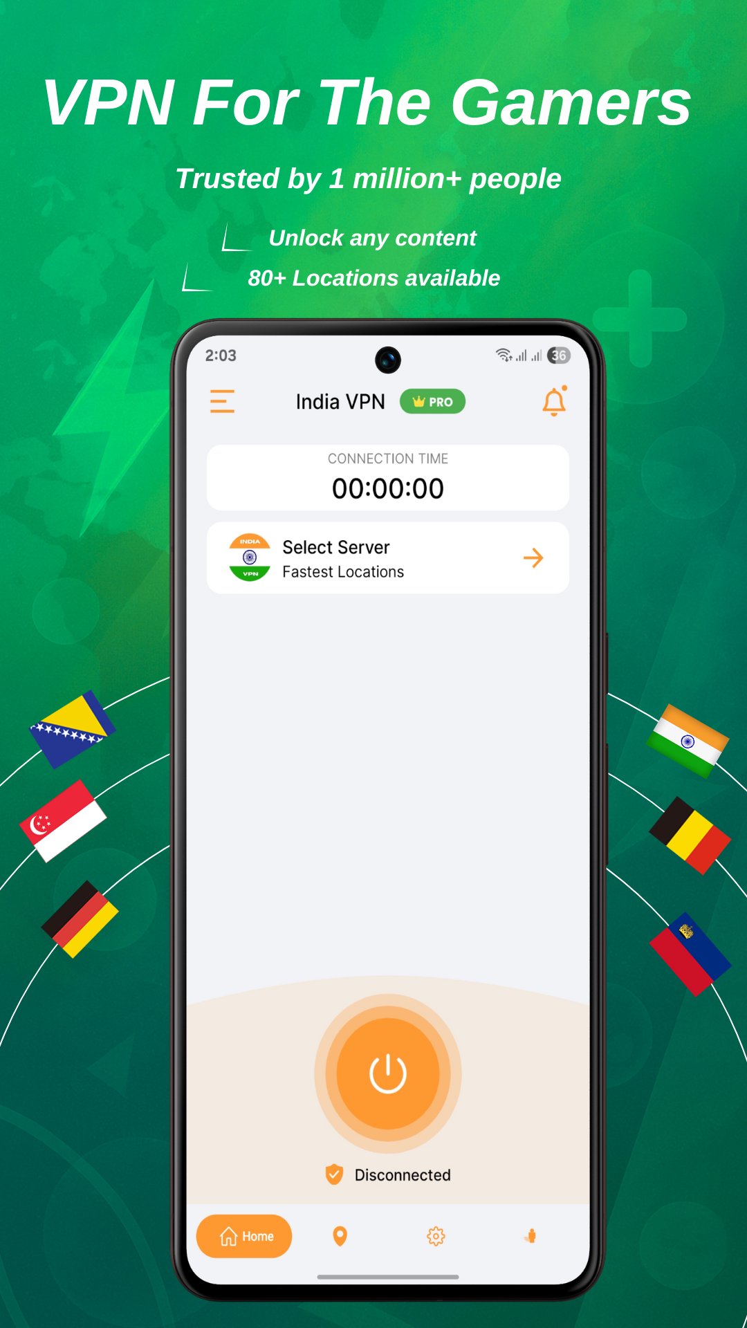 India VPN - Low Ping Gaming on PC