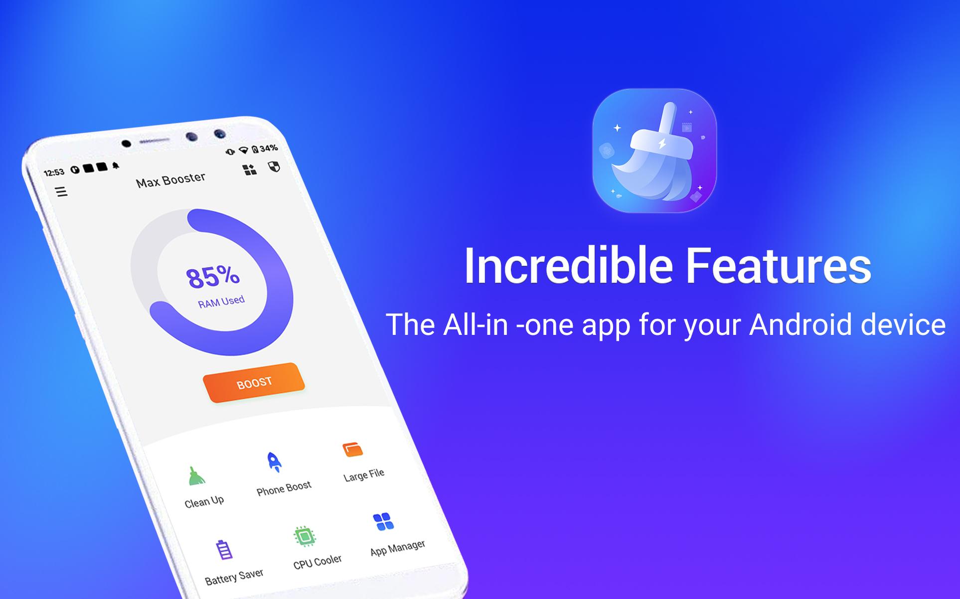 Max Booster's user interface is simple and intuitive, making it user-friendly and easy to clean cache and junk files to free up your phone's RAM.
