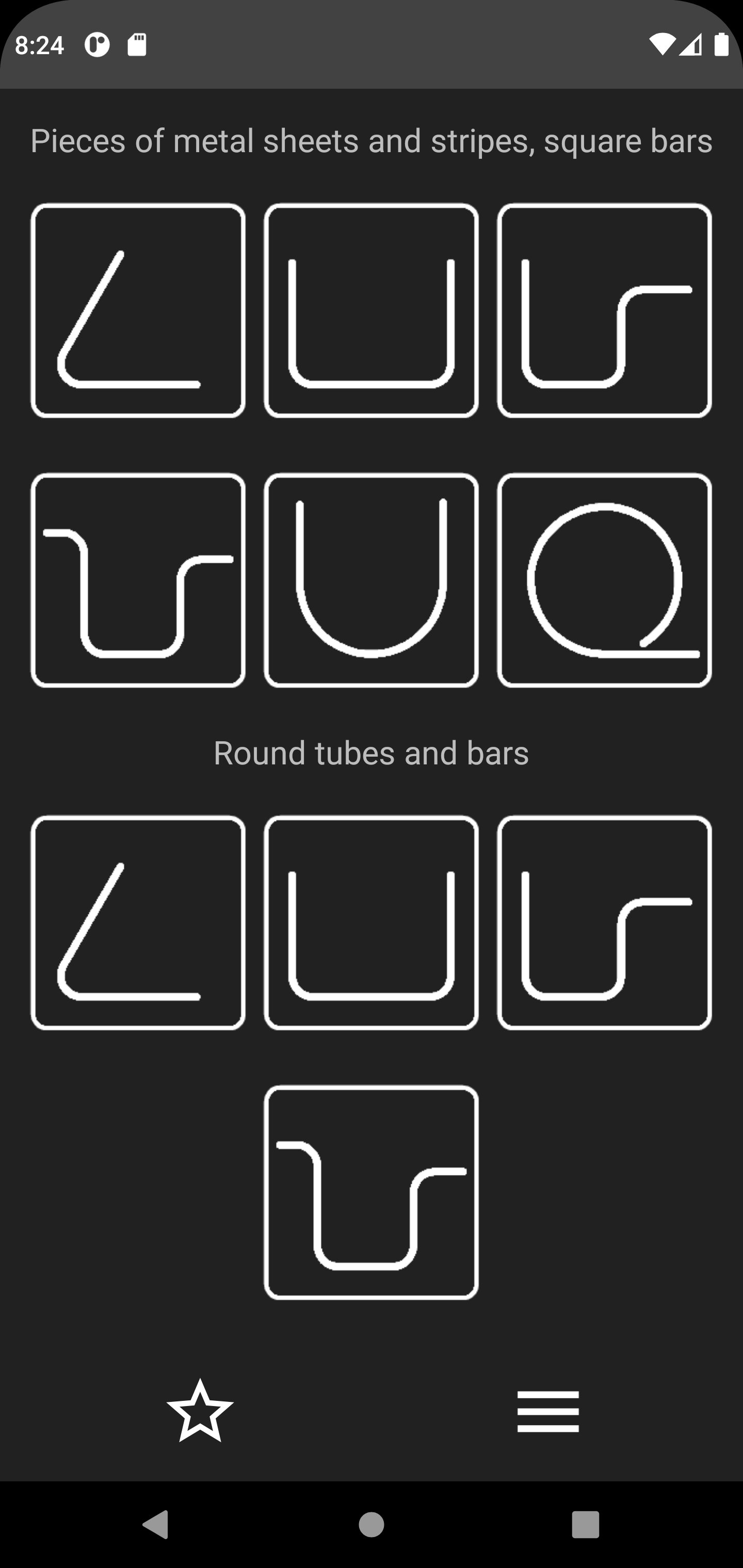 "Metal Bending Calculator" allows to calculate the length of a work piece for bending of metal sheets or stripes, round or square bars and round tubes.